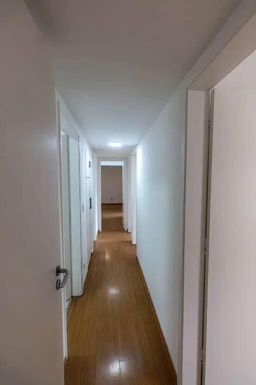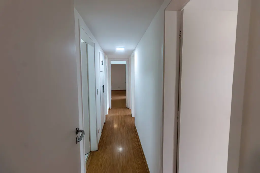 O Apartamento: Espaço e Luz NaturalEm andar alto, o imóvel proporciona uma vista agradável do skyline do bairro. A planta original de 143 m² de área útil é muito bem distribuída, garantindo privacidade e conforto para toda a família: