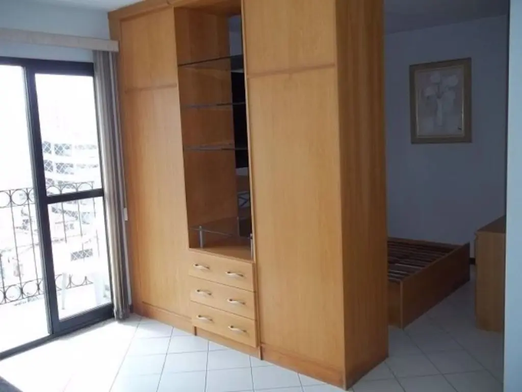 Excelente apartamento tipo Studio, semi mobiliado, cozinha com armários, banheiro e uma vaga de garagem.