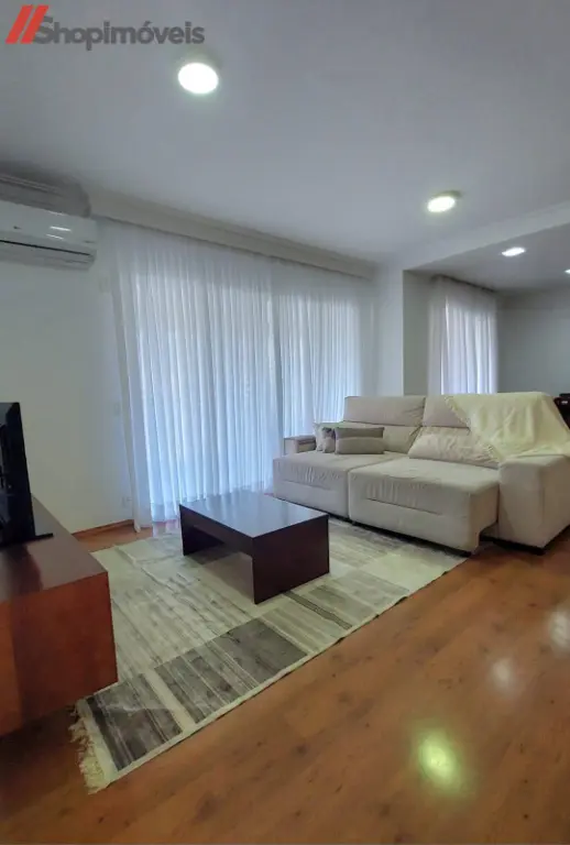 Apartamento mobiliado, ensolarado (face norte), elevador social privativo, ar-condicionado, living para 02 ambientes, lavabo, ampla varanda gourmet e fechada com vidros, 03 suítes, master com sacada e banheira, copa/cozinha equipada, lavanderia com quarto e banheiro de serviço.