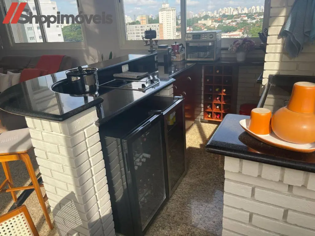 Espaço Gourmet com churrasqueira a carvão.