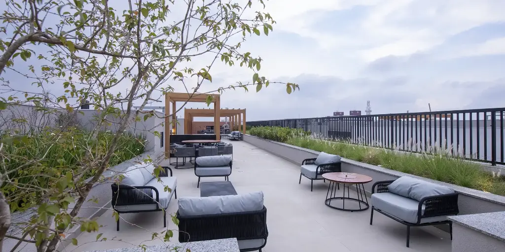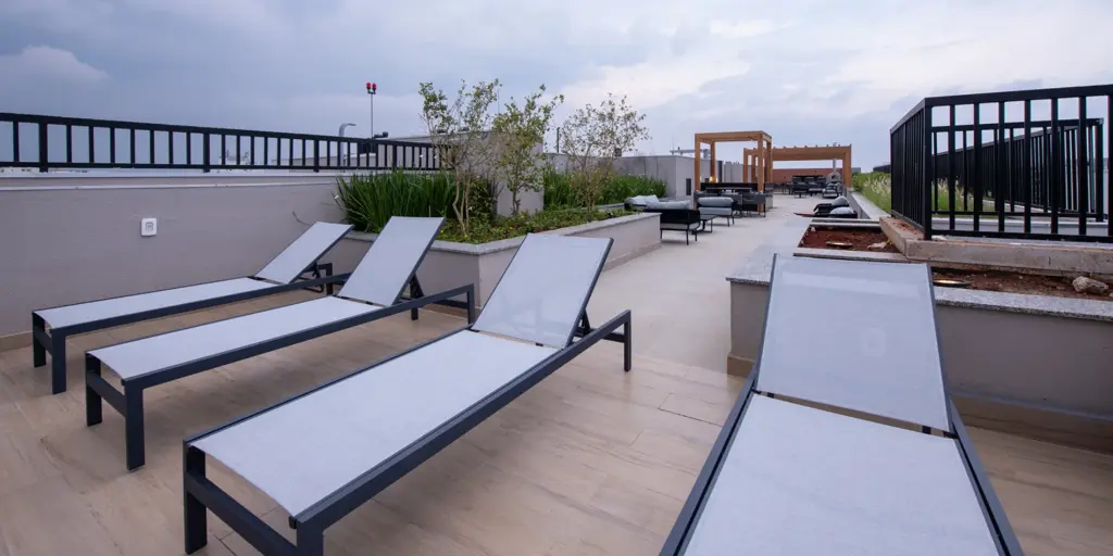 Complexo aquático com piscinas amplas e design moderno, Beach Tennis para diversão ao ar livre, Fitness Center & SPA com equipamentos profissionais, Rooftop com Sky Bar para happy hours inesquecíveis e mais de 40 opções de lazer!
