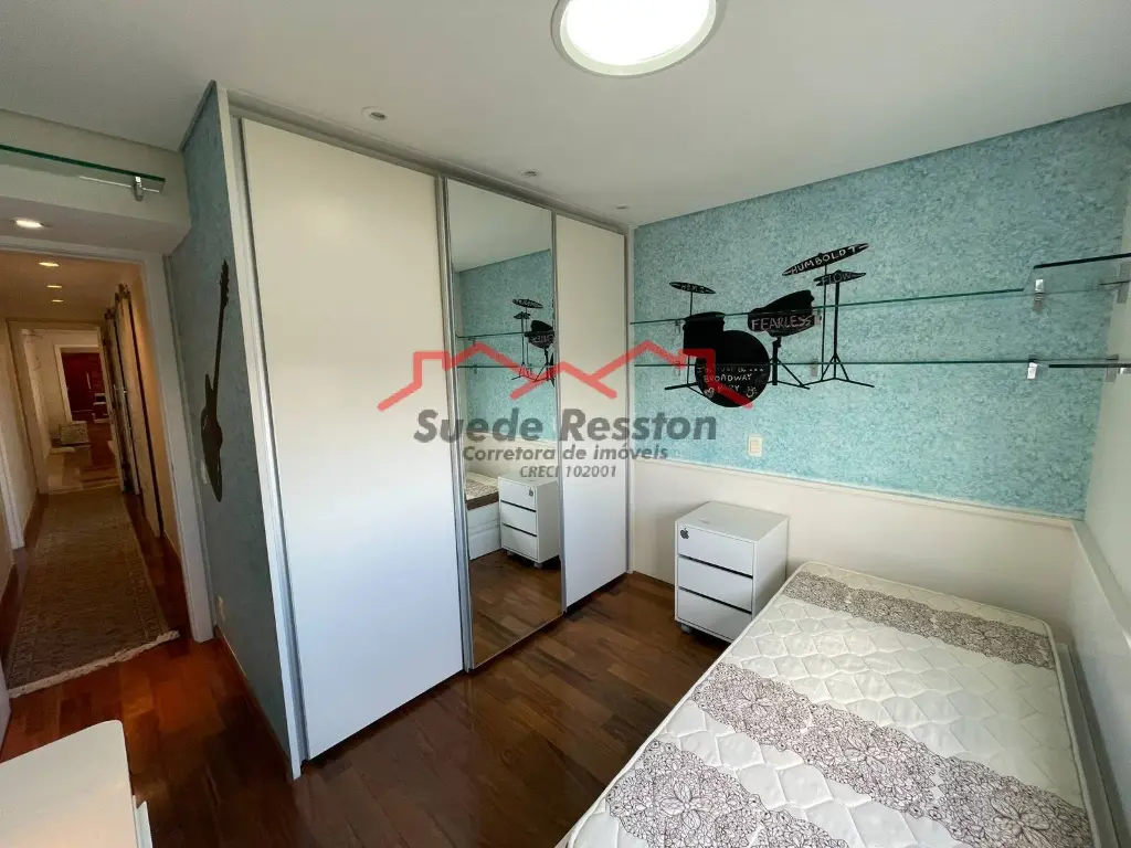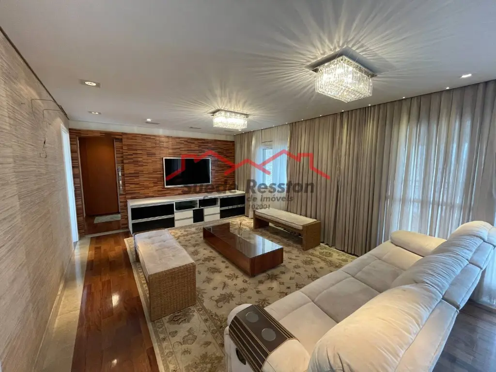 Apartamento com 326 m², 4 suítes (2 suítes master com closet, uma delas com banheira), 2 livings amplos, sala privativa, escritório, adega, 2 varandas (uma gourmet com churrasqueira), 2 áreas de serviço, 2 despensas, cozinha ampla planejada, 4 vagas de garagem + depósito privativo no subsolo.