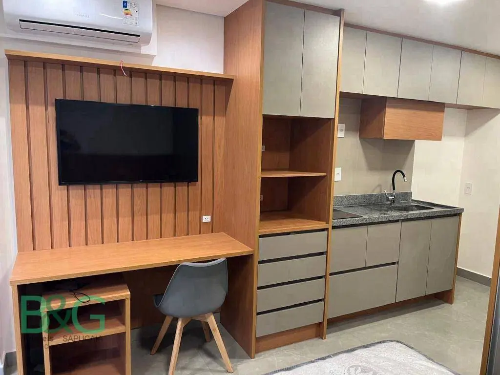 Este studio moderno no Zip Brooklin é ideal para quem busca um imóvel funcional, totalmente mobiliado e pronto para morar.
