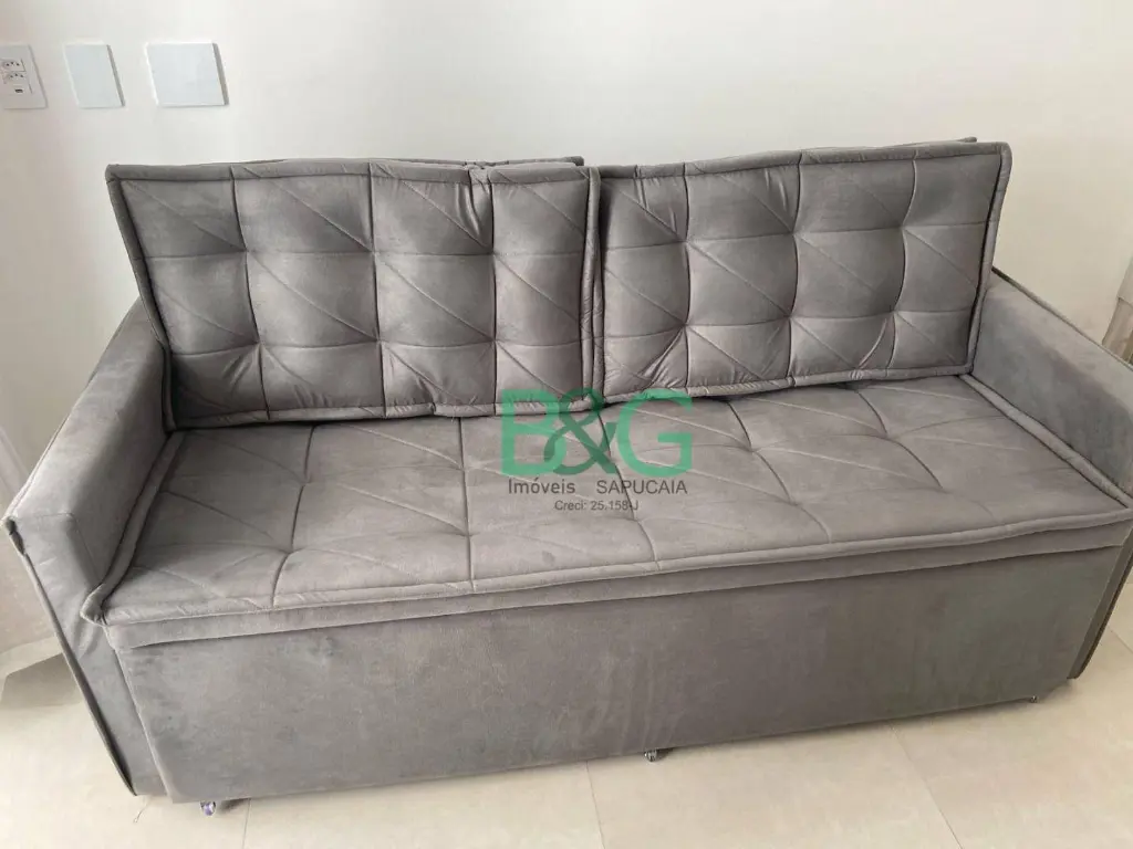 Mobiliado, sofá, geladeira inox, cooktop 2 bocas, coifa, uma mesa com 2 cadeiras e 2 Puff
