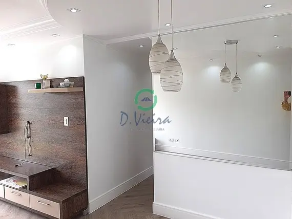 Sala para dois ambientes com piso Laminado, Iluminação diferenciada, Sacada envidraçada, cozinha com bons armários, área serviço com aquecedor a gás. Bons dormitórios com armários, sendo uma suíte, banheiro com box Blindex e ducha quente
