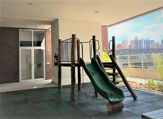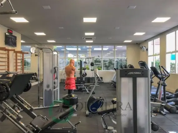 Boa distribuição interna com sala para dois ambientes, sacada fechada, cozinha estilo americana com armários, fogão Cooktop e Forno elétrico, área serviço com aquecedor a gás. Ar condicionado na suíte, banheiro com box Blindex e ducha.