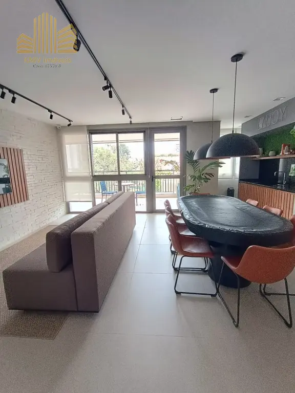 Com dois quartos bem distribuídos com armários planejados e ar condicionado, cozinha com armários, sala 2 ambientes com sacada gourmet, 1 vaga de garagem.