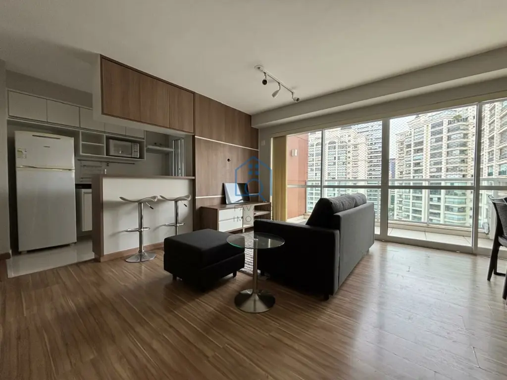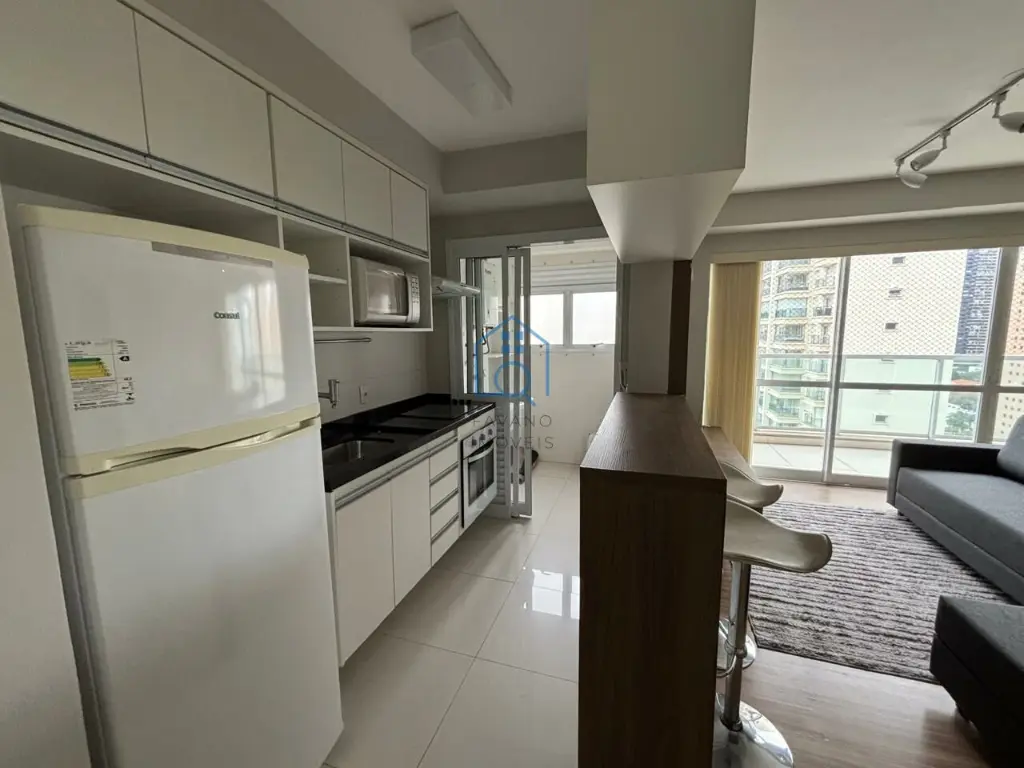 Apartamento no Brooklin com lazer completo. Atmosfera moderna e vista ampla. Possui suíte, dois banheiros e vaga de garagem. Agende uma visita!