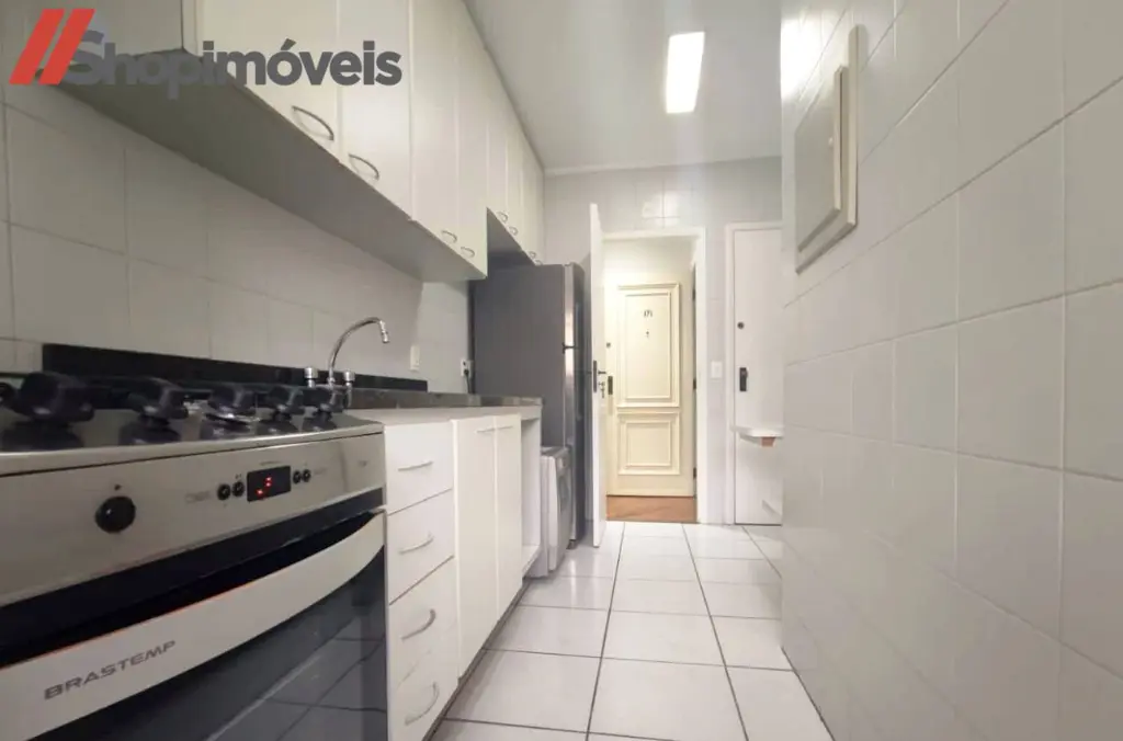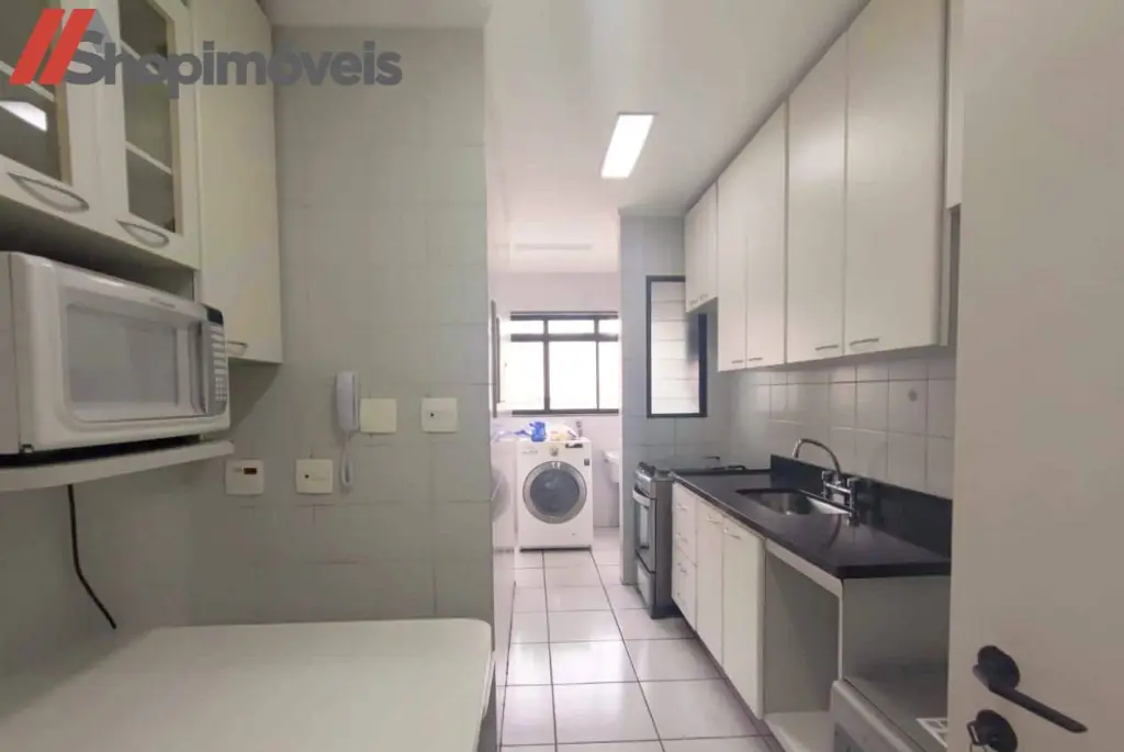 A cozinha é completa, equipada com geladeira duplex, lava-louças, micro-ondas, fogão de quatro bocas e filtro de água.
