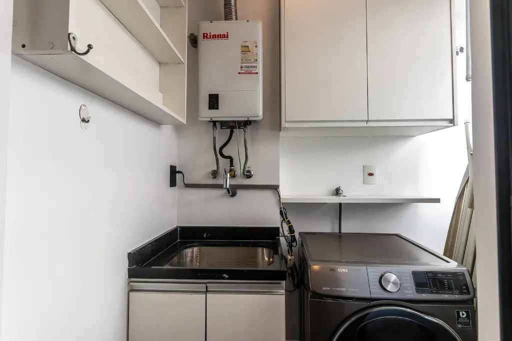 Inúmeras tomadas elétricas todas com entrada pra usb - cabeamento interno - internet fibra vivo com wifi de alta potência - televisão smart tv da LG oled de 55 polegadas - apple tv - aquecimento de água a gás - água quente instantânea em todas as torneiras - armários atrás da parede de espelho no banheiro - fogão a gás encanado - iluminação led discretamente incorporada na arquitetura - geladeira smart fridge (Panasonic) - maquina de lavar e secar smart - box de vidro temperado - chão de madeira corrida - muito armário, muito armário mesmo.