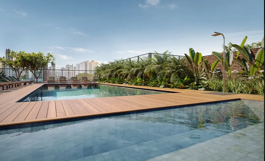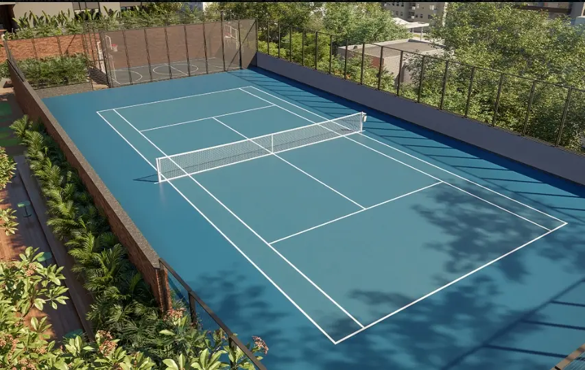 Cada unidade terá umas das vagas para carro elétrico. Hall social privativo com 2 elevadores. Depósito individual na garagem de 5m2. Lazer completo e elevado no 5° andar , com Quadra de Tênis Oficial e piscina raia 25m , aquecida. Empório SANTA MARIA integrado no projeto.