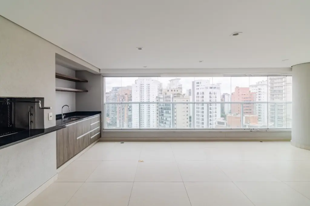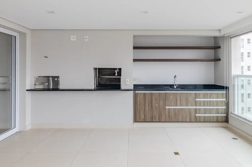 O living amplo se conecta à varanda gourmet integrada, criando um espaço ideal para receber e viver bem.