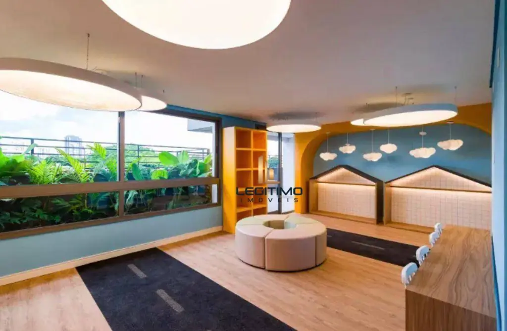Área de lazer com infraestrutura completa com pisicina, academia, coworking, churrasqueira á carvão, brinquedoteca, lounge e quadra poliesportiva.