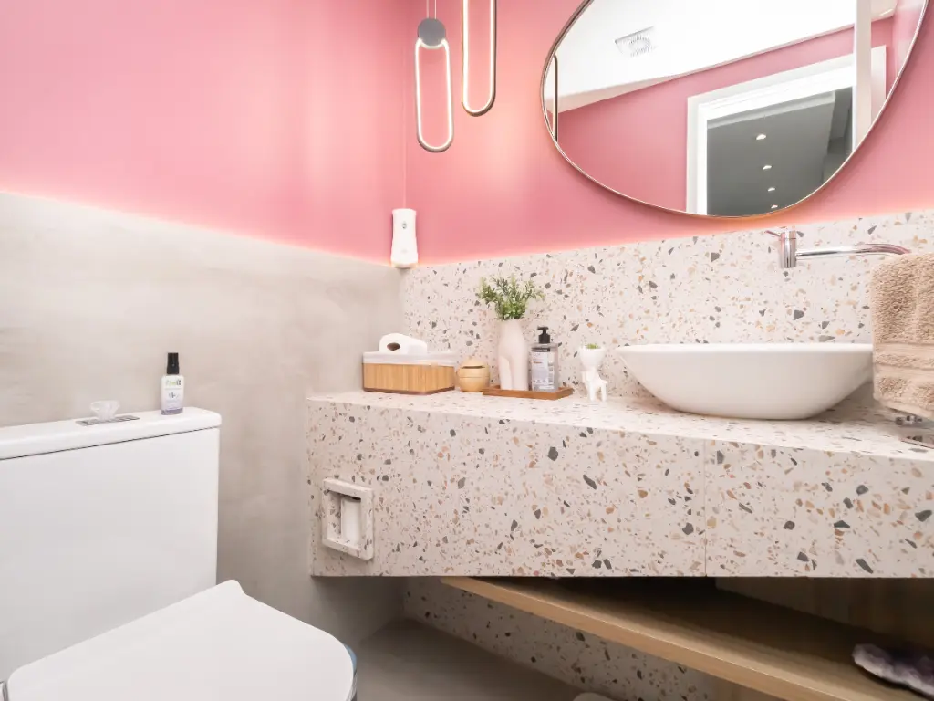 Na área íntima, o apartamento dispõe de 2 dormitórios, sendo 1 suíte que garante privacidade, além de um banheiro social. O imóvel também conta com lavabo, oferecendo mais comodidade tanto para moradores quanto para visitantes.