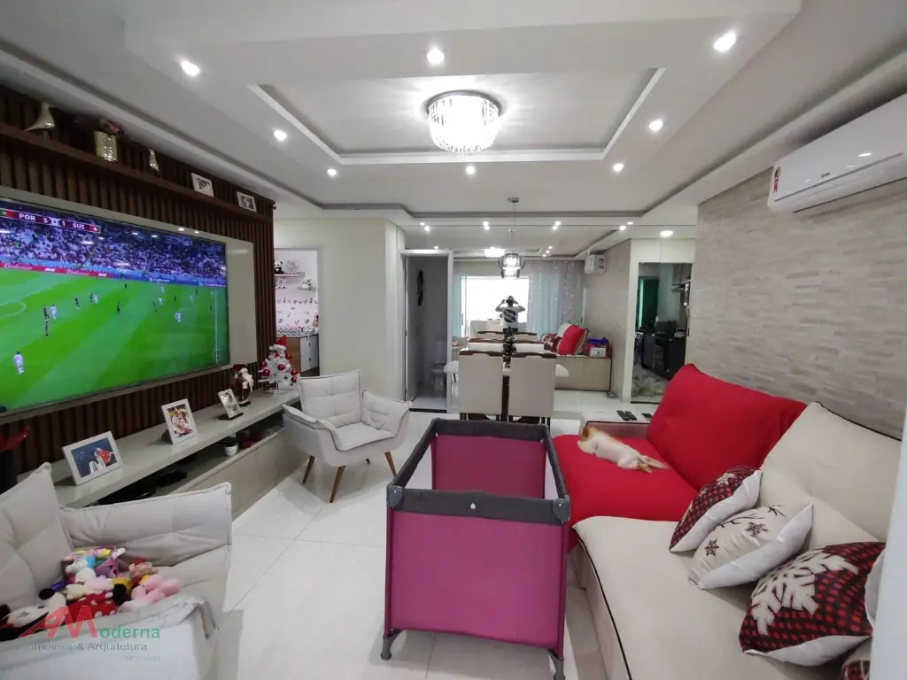 Apartamento de alto padrão com 93m², 2 dormitórios, sendo 2 suíte, sala, cozinha, 3 banheiros, sacada e 2 vagas de garagem em frente ao elevador, imóvel todo mobilhado. No ultimo andar.