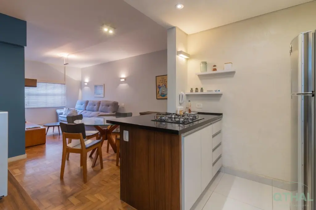 Imóvel reformado de 81m² com sala, cozinha, 2 quartos, sendo 1 suíte, closet com armários planejados, 1 banheiro social, sem vaga de garagem.