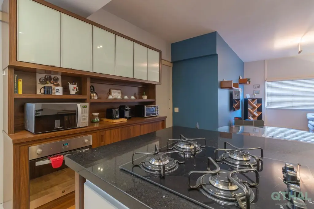 Totalmente mobiliado!!! O apartamento já possui sofá de 3,20m de largura, retrátil e reclinável; rack na sala; cama queen; cama de solteiro; forno elétrico grande embutido; Cooktop de 5 bocas; micro-ondas; geladeira; forninho elétrico; máquina lava e seca; lava louças de 8 serviços e TV 49 4k Samsung.