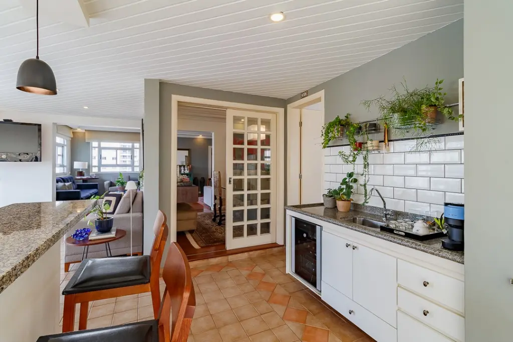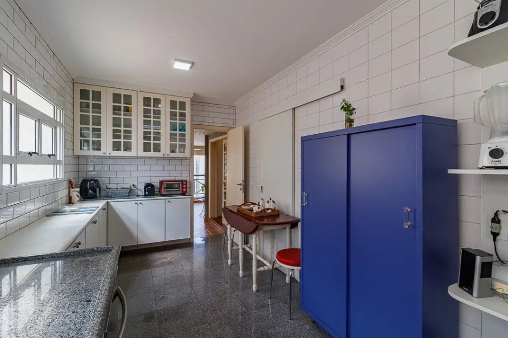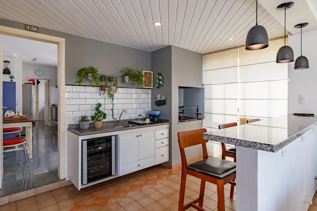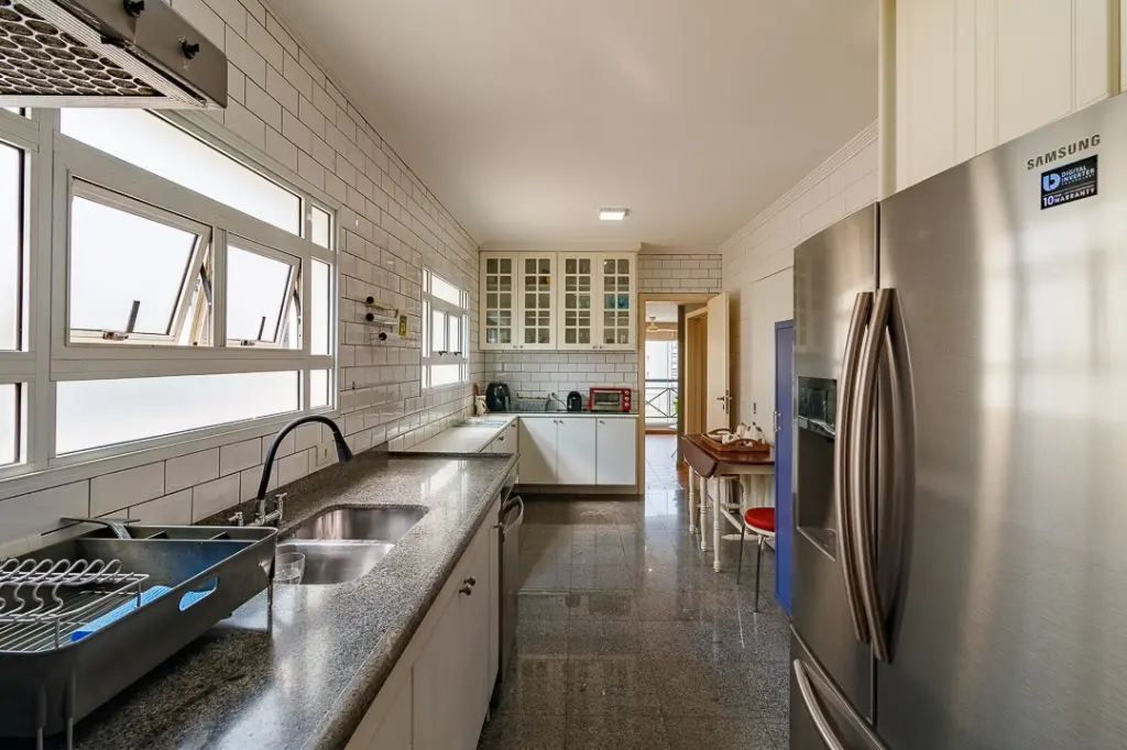 A cozinha igualmente espaçosa e planejada, garante a praticidade e organização indispensáveis no preparo das refeições.