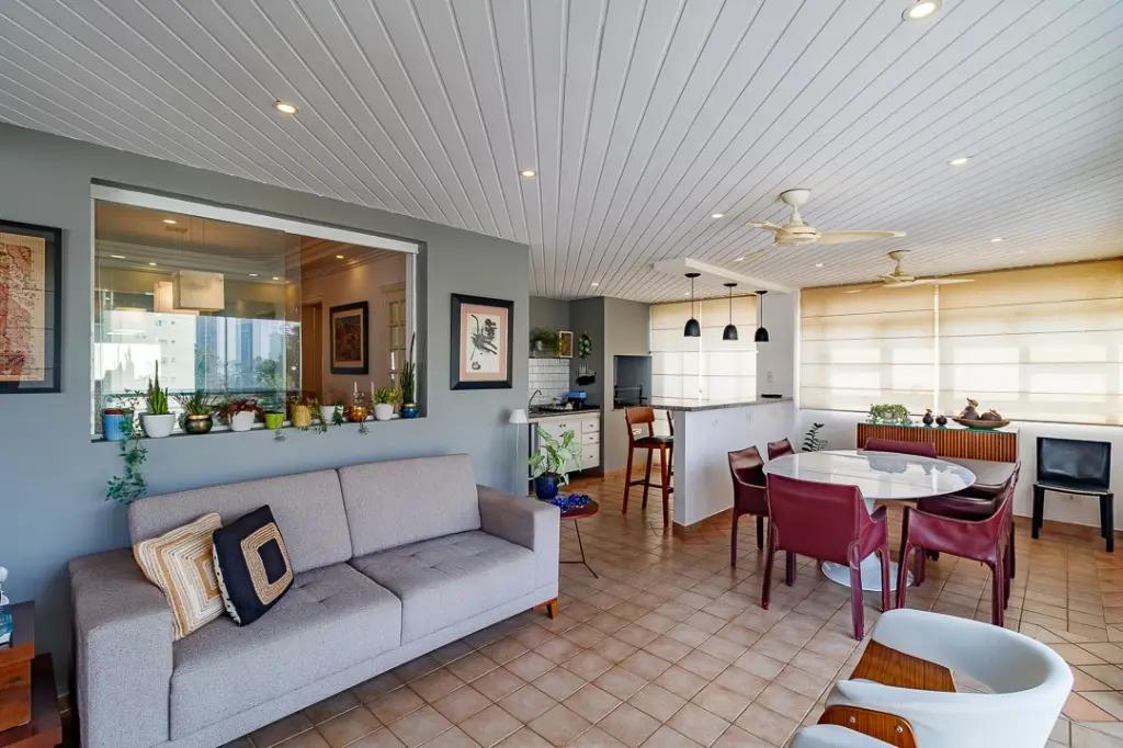 A sala de jantar está logo ao lado, e será palco para os almoços e jantares em família e com os amigos.