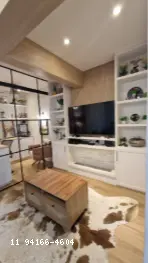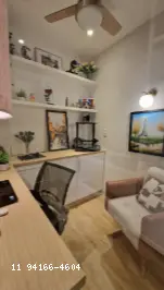 sala 2 ambientes com cozinha com ilha integrada, escritorio quarto de empregada em suite