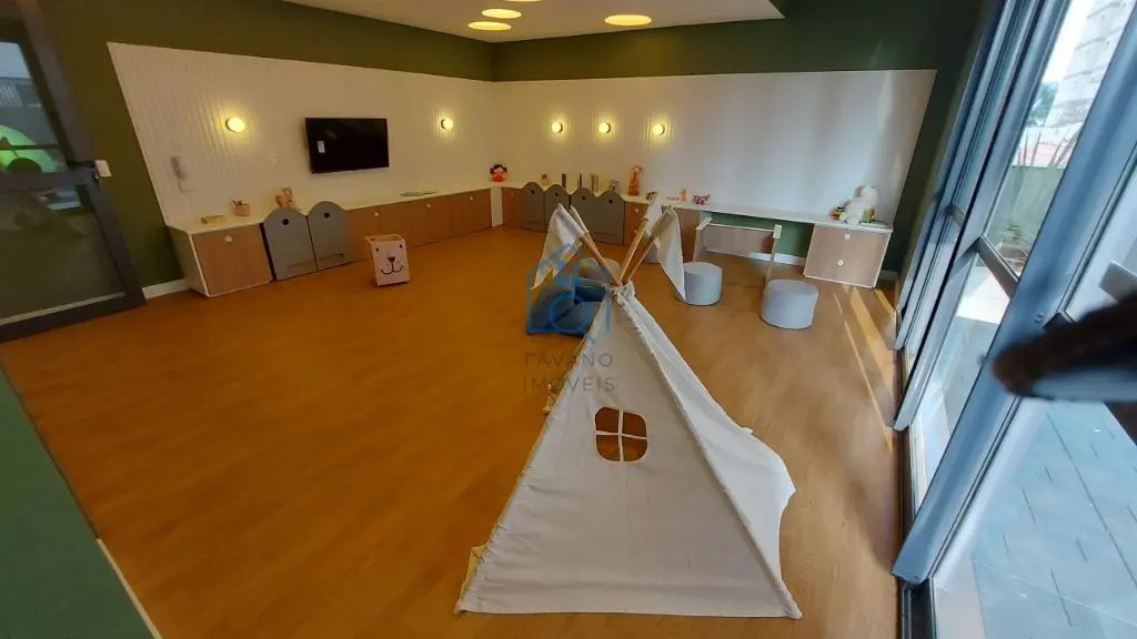 Possui academia, espaço gourmet, área verde de jardim, playground, salão para festas e eventos.