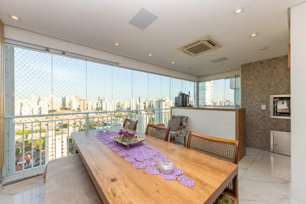 Com uma planta 110 m² bem distribuídos, totalmente mobiliado e equipado, este imóvel é ideal para quem valoriza otimização de espaço e sofisticação. A propriedade dispõe de ambientes cuidadosamente planejados, incluindo três suítes, com varanda na principal. A área social é composta por sala de estar, varanda gourmet, cozinha integrada, lavabo e área de serviço. Além disso, conta com três vagas de garagem e depósito privativo, garantindo praticidade e segurança aos moradores.