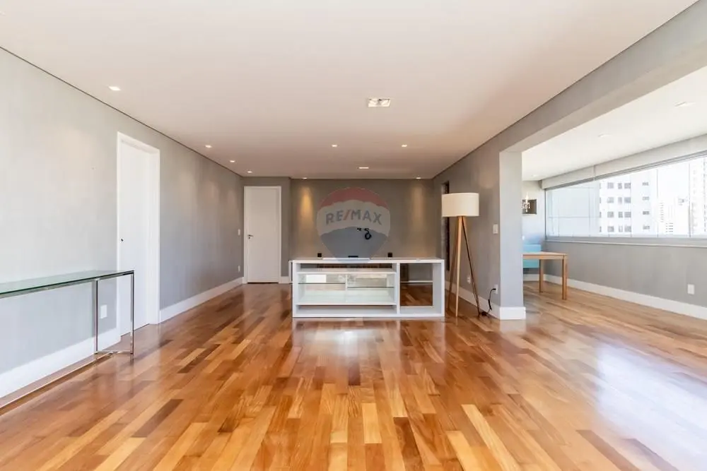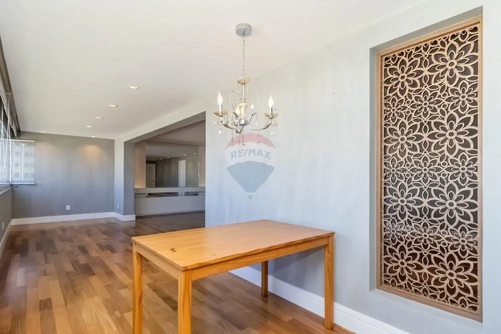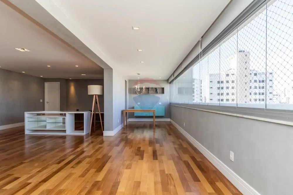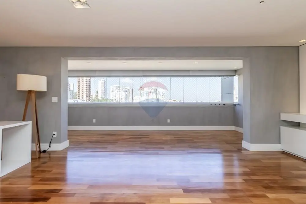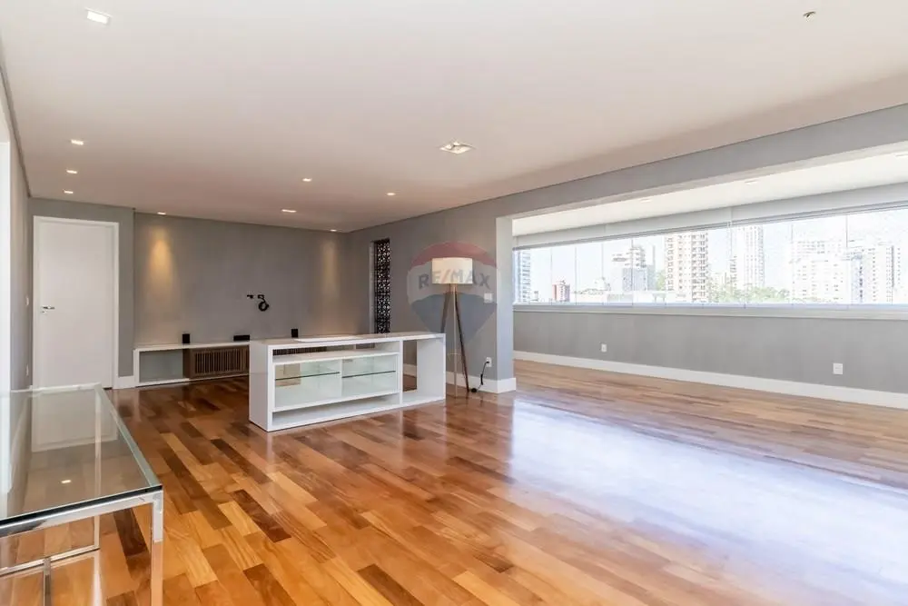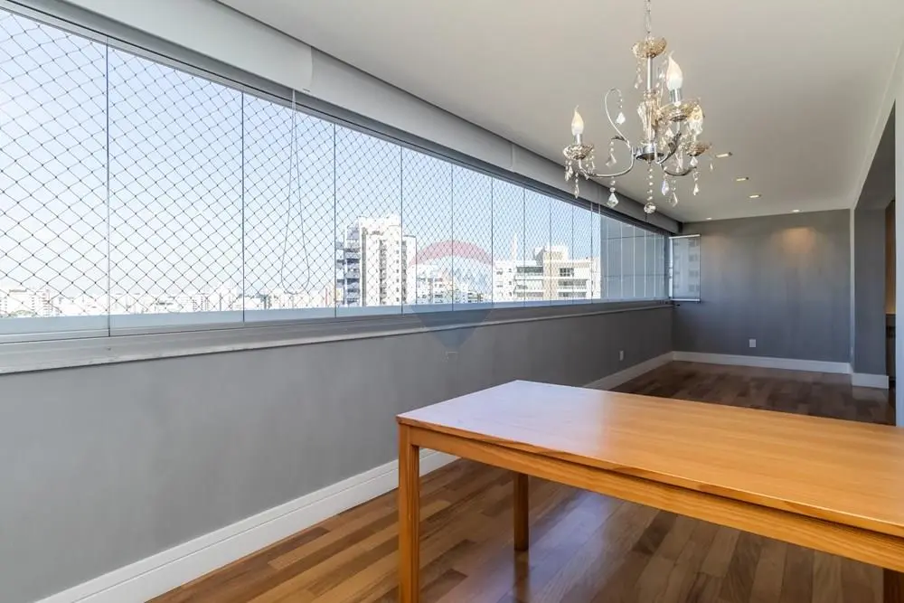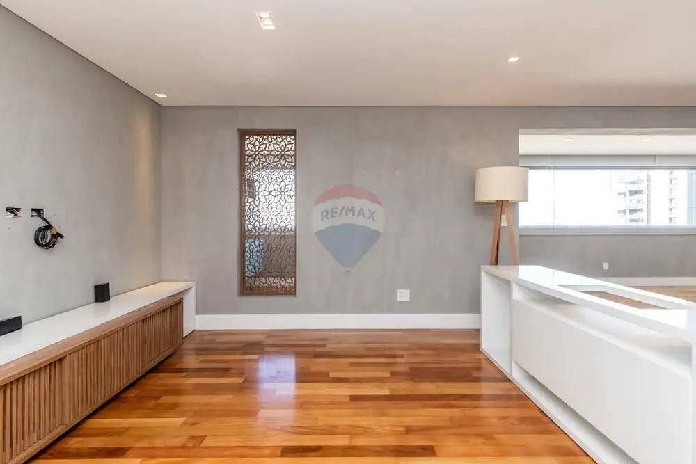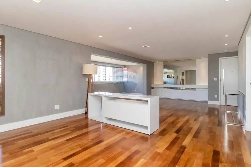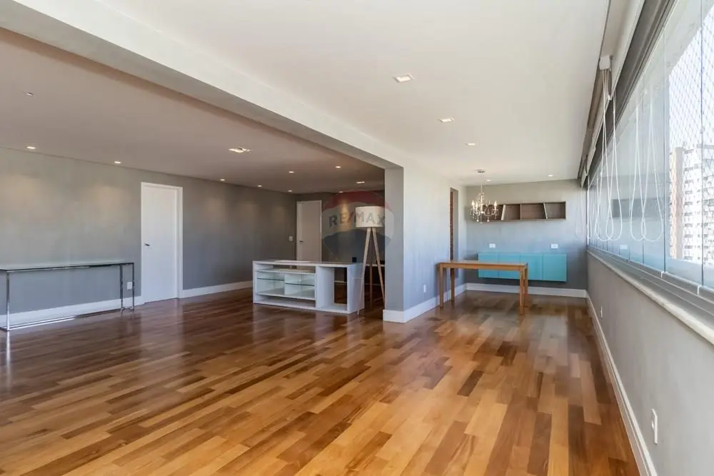 Este elegante apartamento de alto padrão conta com marcenaria e móveis personalizados por arquiteta, revestidos em lâmina de madeira natural, ambientes amplos e projeto de decoração exclusivo. São 3 suítes, 5 banheiros, lavabo, além de living para 3 ambientes integrado à varanda gourmet espaçosa, perfeita para receber com charme e conforto.