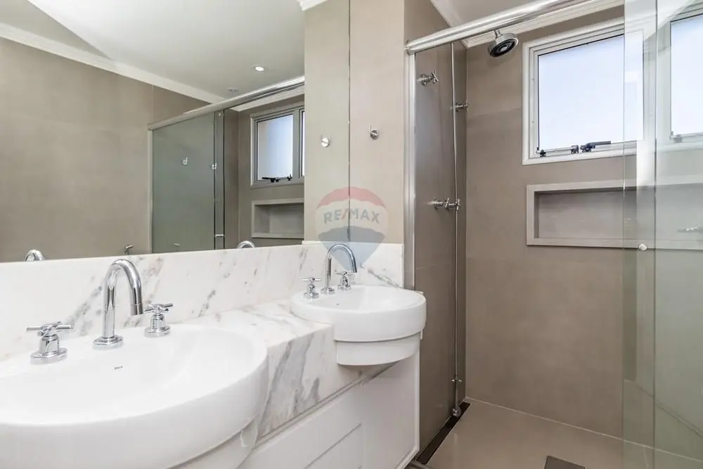 - 5 banheiros no total, sendo 3 suítes, 1 lavabo e banheiro de serviço