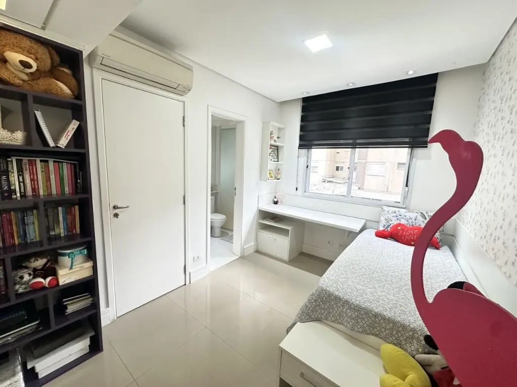 Parte superior conta com 4 dormitórios sendo 3 suítes com armários embutidos e ar condicionado, sala de Tv/Estar com ar condicionado, varanda gourmet com linda vista para o bosque. O apartamento possui 3 vagas de garagem e depósito privativo no subsolo.