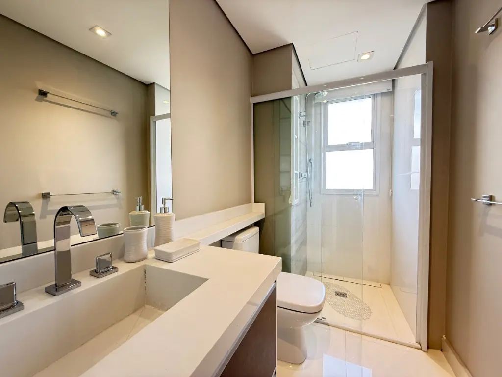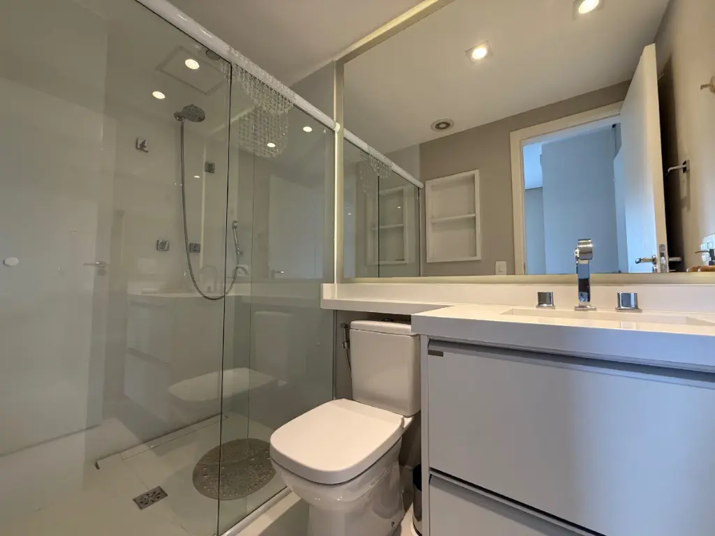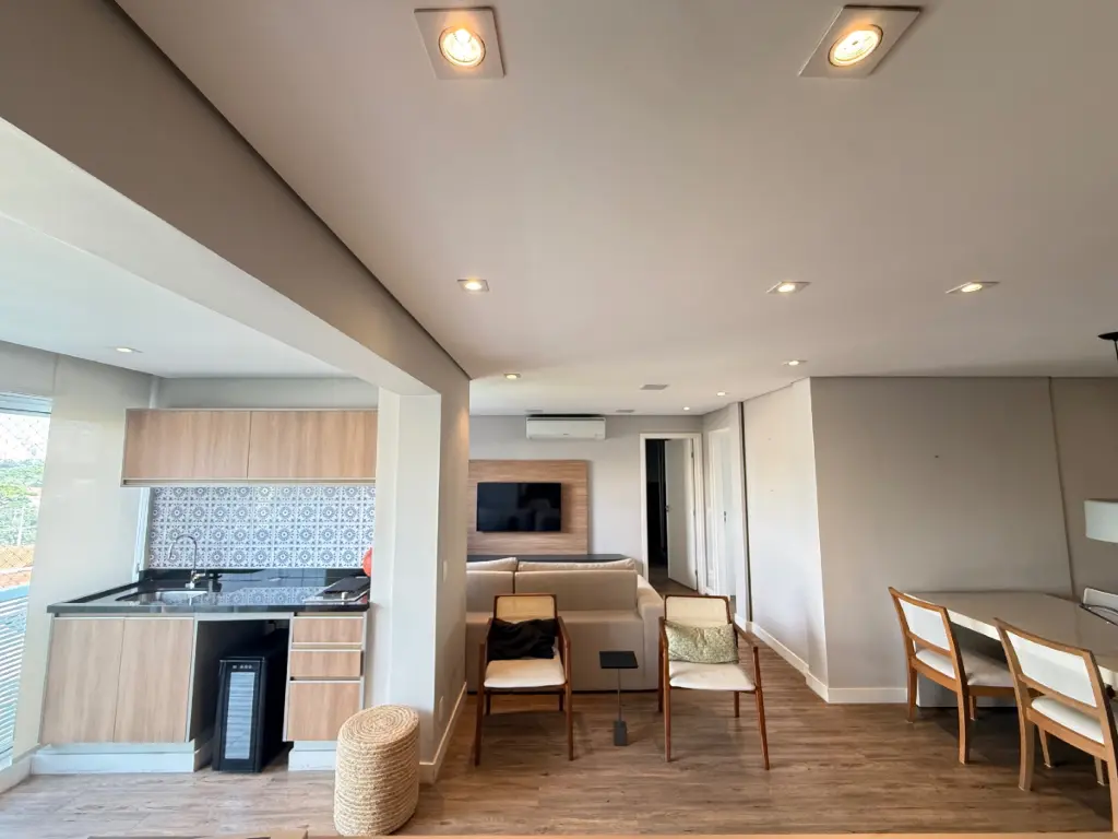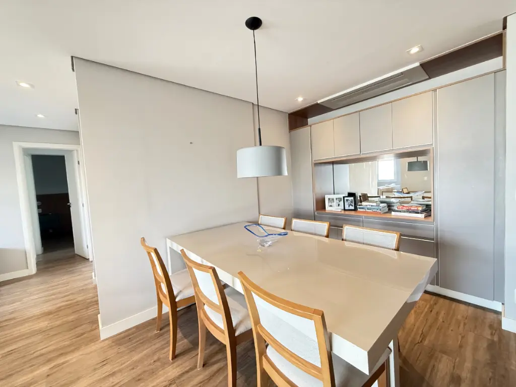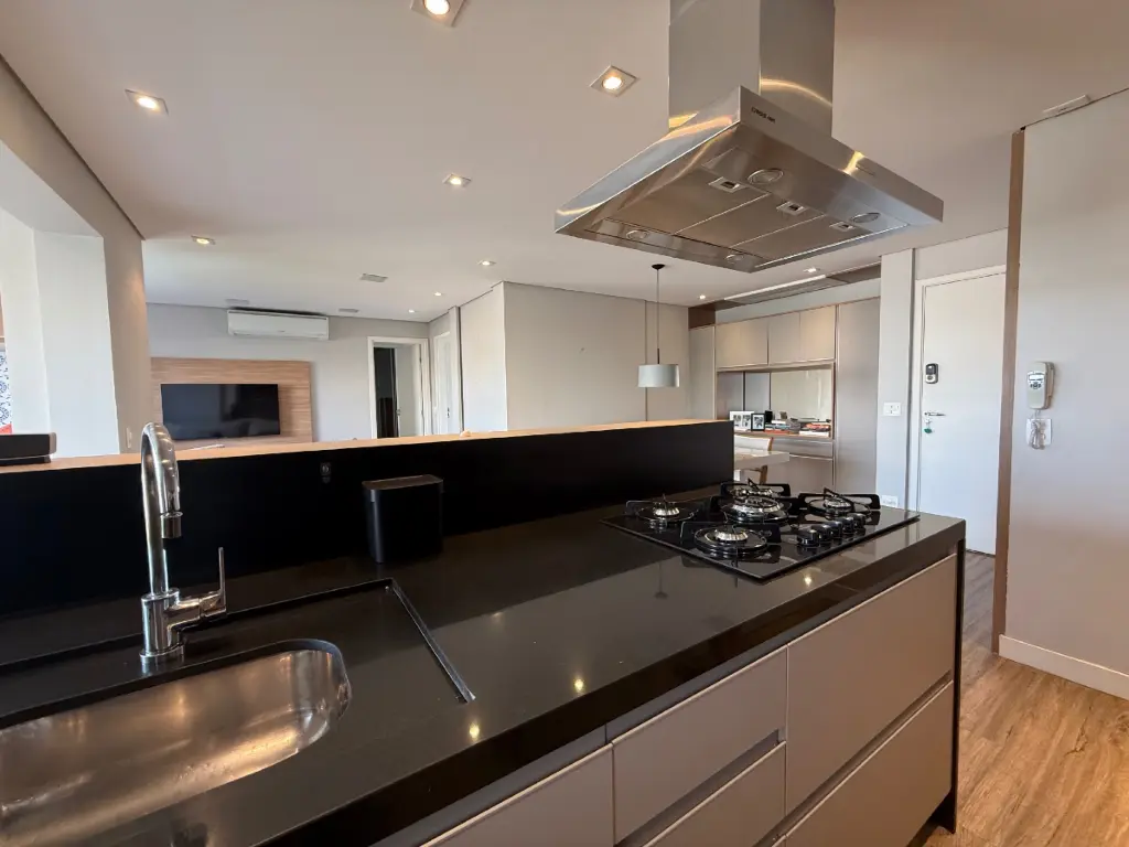 São 2 suítes, além de 2 vagas de garagem e depósito privativo, um diferencial importante para organização. A planta é contemporânea e funcional, com sala de TV e cozinha integrada, criando um ambiente fluido e acolhedor. O imóvel conta com acabamentos de primeira linha e ar-condicionado em todos os ambientes, garantindo conforto térmico e elegância.