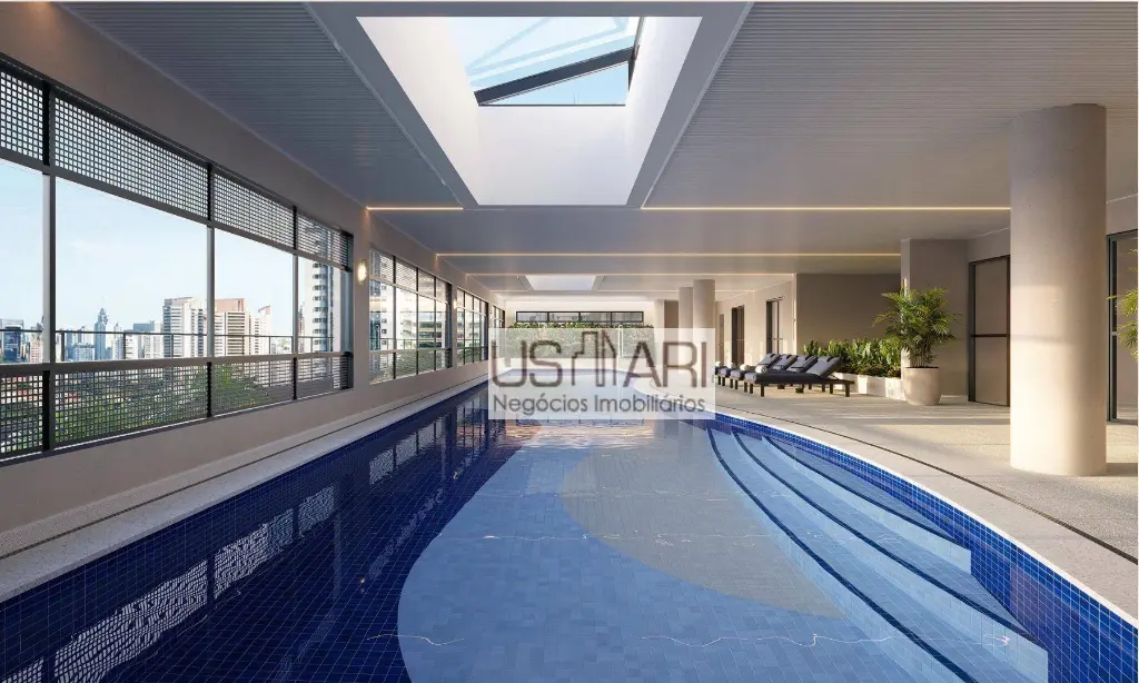 Os apartamentos contam com hall social com elevador privativo, piso a piso de 2,88 m, infraestrutura para ar-condicionado, automação de persianas, tomadas USB-C, previsão para coifa, ralo linear no terraço e churrasqueira a carvão em todas as unidades.