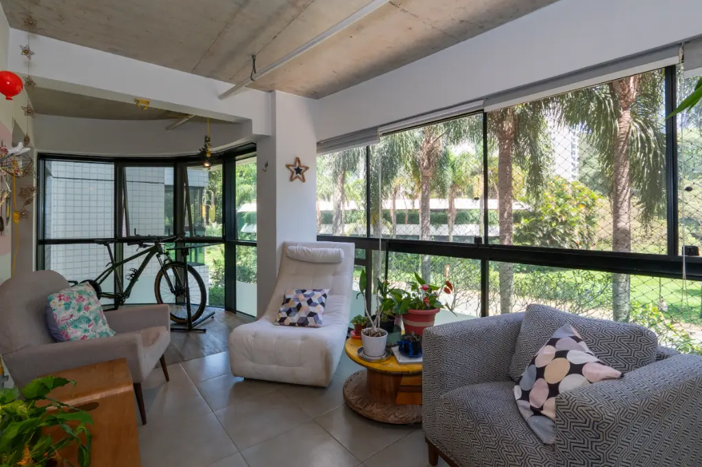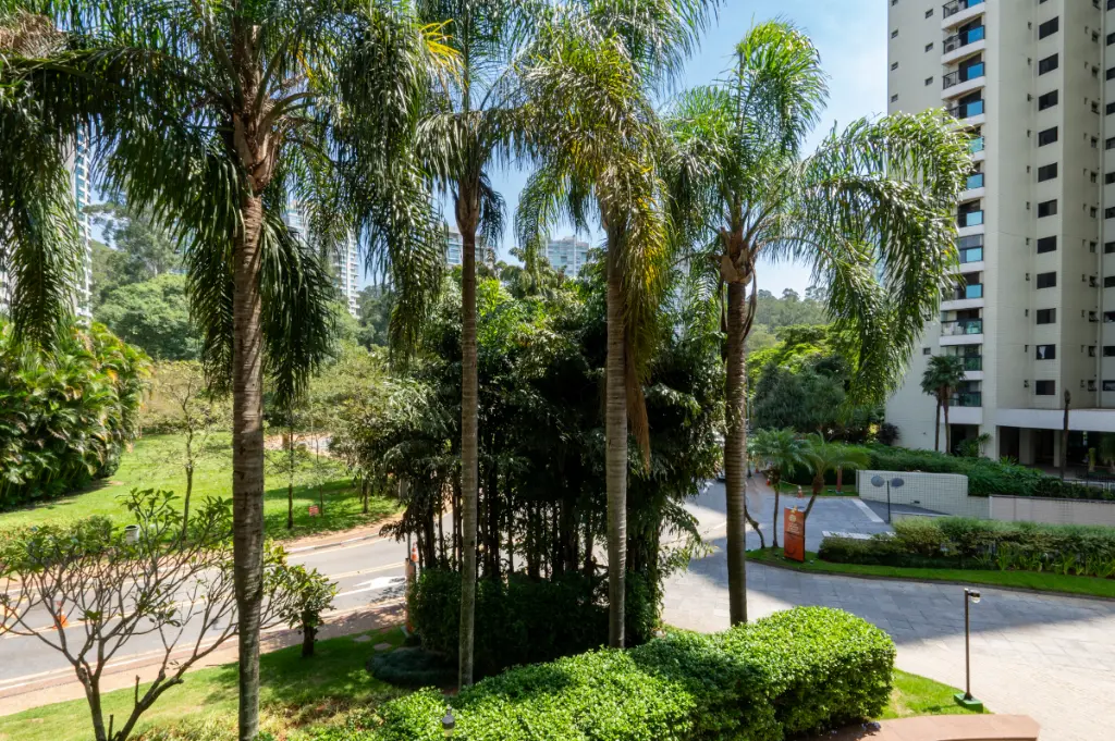 Com 152m² muito bem distribuídos, este imóvel se destaca logo na chegada: a integração da sala com a sacada ampliou os espaços e trouxe ainda mais luz e fluidez ao ambiente. A vista permanente para a praça central do Condomínio Villaggio Panamby cria um cenário vivo, agradável e raro.