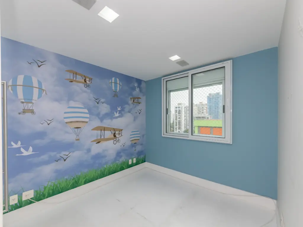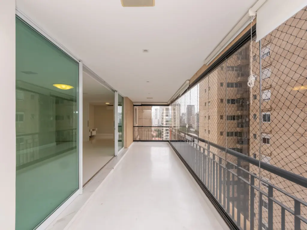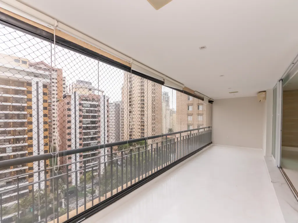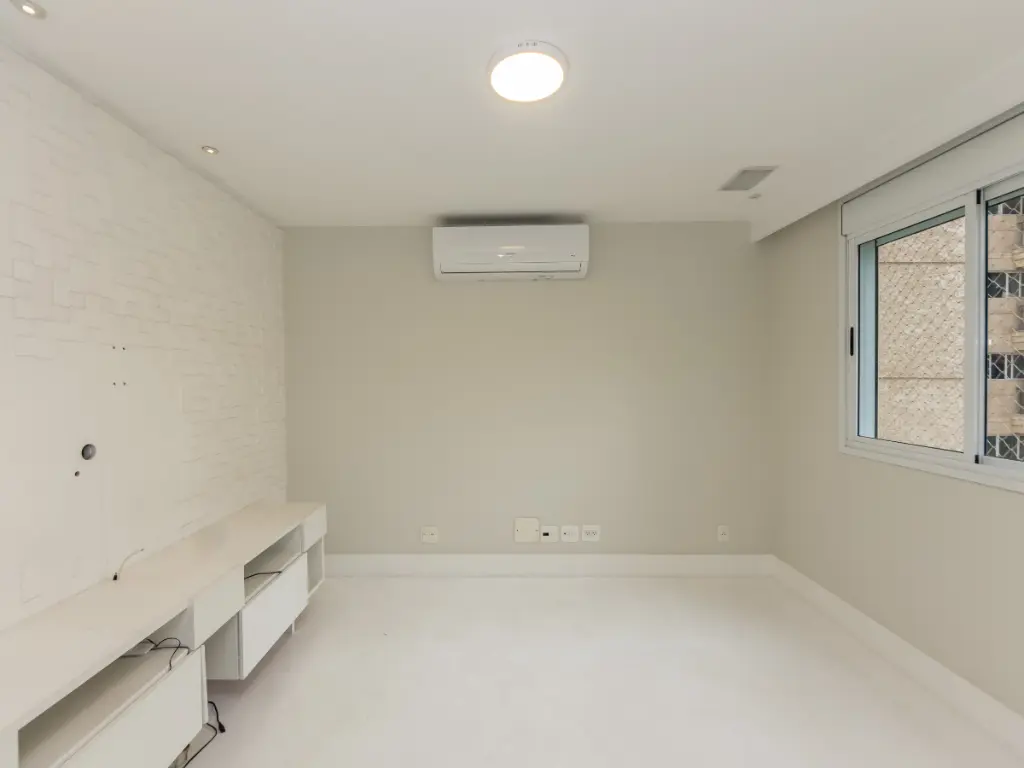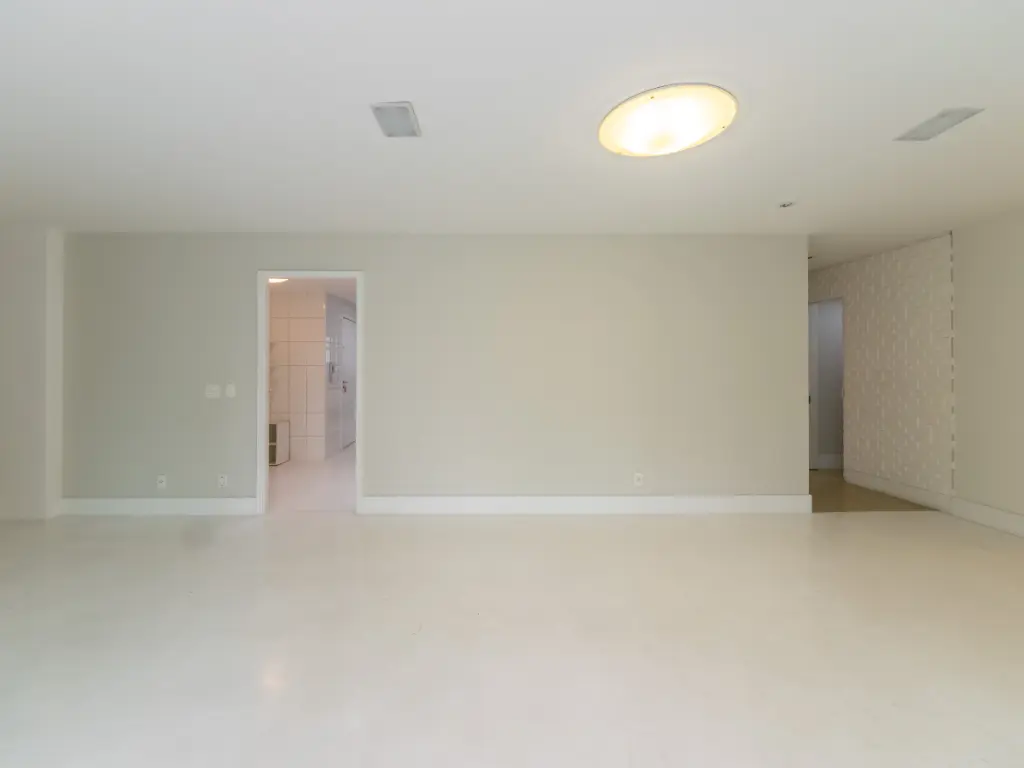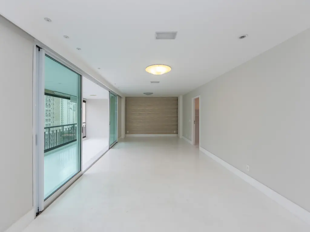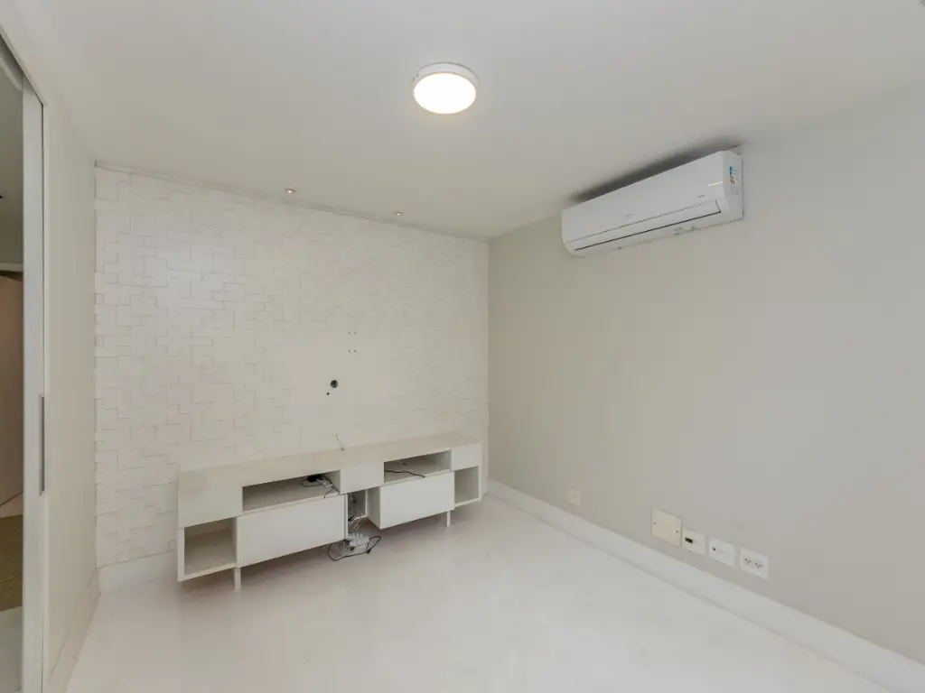 O imóvel conta com lavabo, varanda com Sol da manhã e vista definitiva, living para dois ambientes, sala de TV, ar-condicionado, ampla cozinha com área de serviço, banheiro e dependência de funcionário.