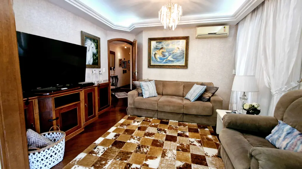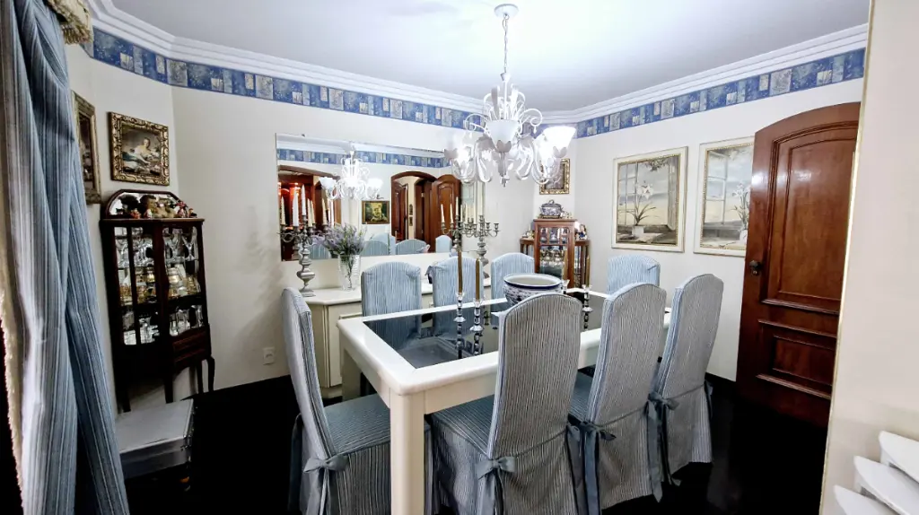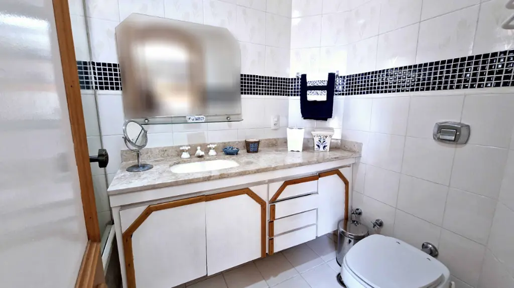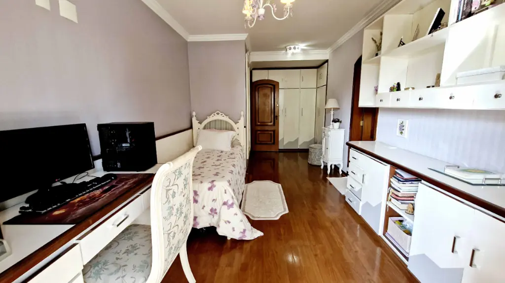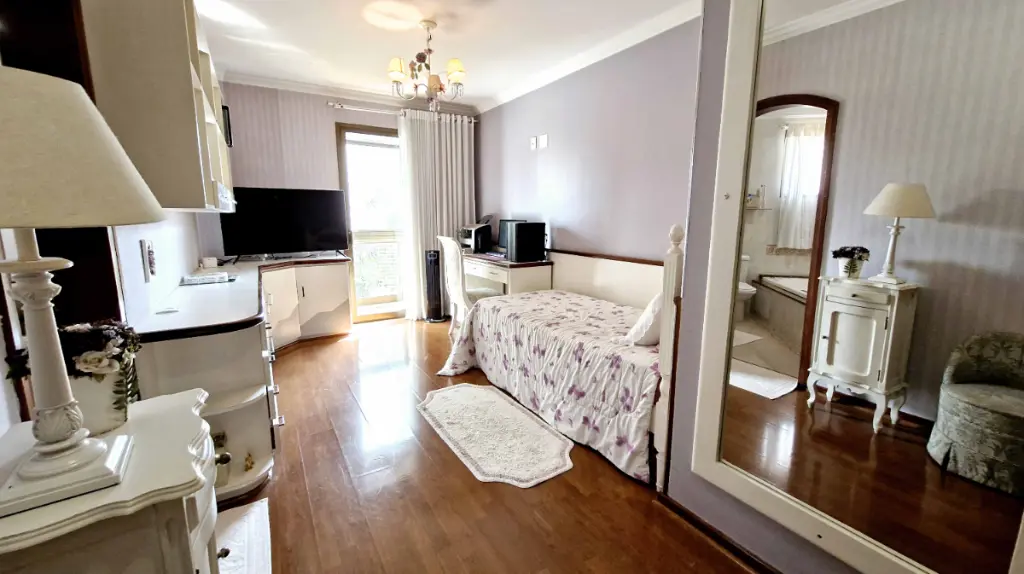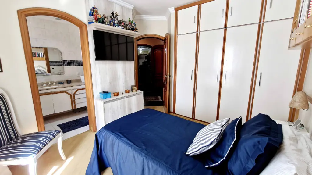 Com 4 dormitórios, sendo atualmente de 3 suítes com 1 dormitório reversível para sala de tv ; com 5 banheiros ( sendo 1 lavabo e 1 de serviço). Cada suíte proporciona conforto completo: ar-condicionado, armários planejados, com sacadas privativa e banheiro com jacuzzi. Ideal para quem valoriza bem-estar e espaços individuais bem definidos.