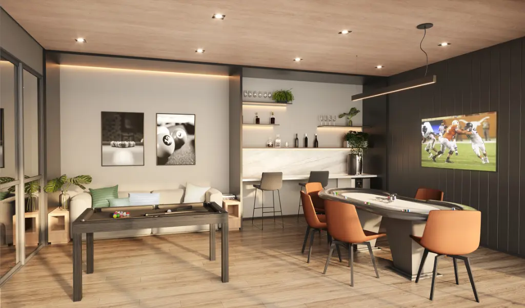 Para encontros e celebrações, o condomínio conta com salão de festas e espaço gourmet, além de sala de jogos, proporcionando ambientes versáteis para receber amigos e familiares. As crianças têm à disposição playground e brinquedoteca, garantindo diversão com segurança dentro do próprio condomínio.