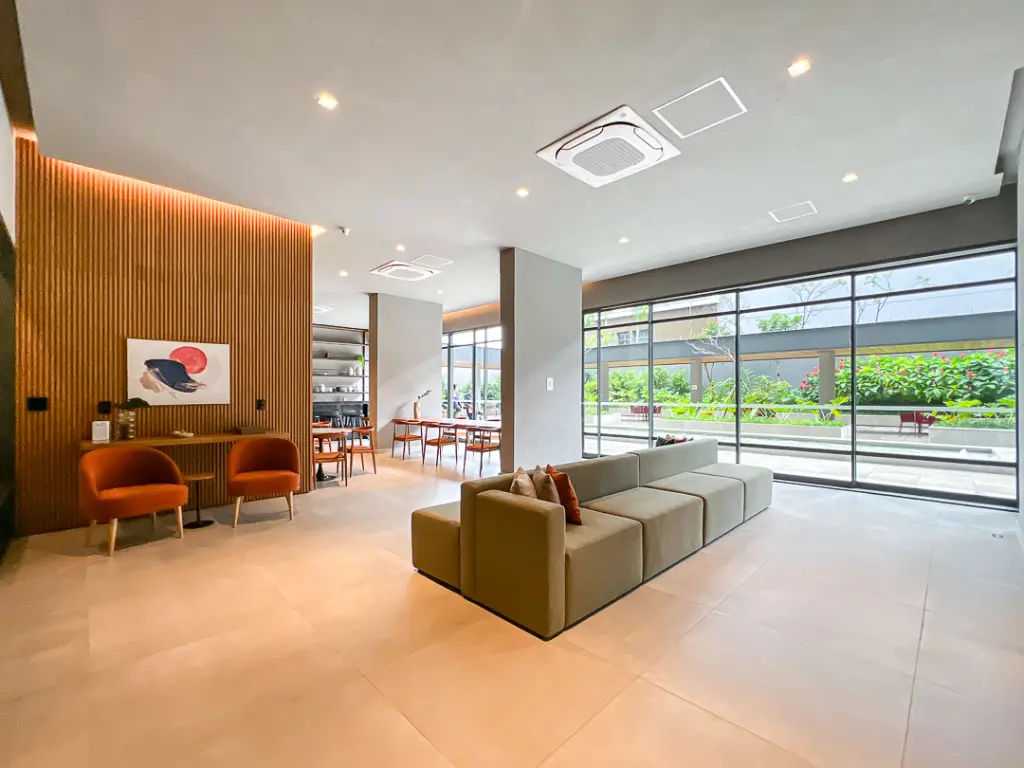 O condomínio oferece infraestrutura completa de lazer e conveniência, com piscina adulto e infantil, academia equipada, sauna seca, espaço zen e solarium, brinquedoteca, salão de festas, salão de jogos, espaço gourmet com churrasqueira e forno de pizza, coworking, lavanderia pay-per-use, mini-market, bicicletário e pontos de recarga para carros e bicicletas elétricas, além de portaria 24 horas, proporcionando segurança e tranquilidade.