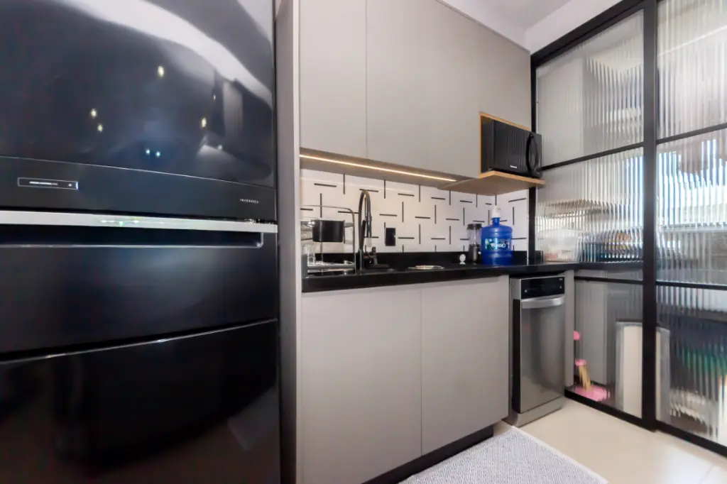 São 3 dormitórios, sendo 1 suíte, todos com ar-condicionado, garantindo conforto térmico em qualquer época do ano. A cozinha integrada à sala traz fluidez aos ambientes e conversa com um estilo de vida contemporâneo, enquanto a lavanderia é prática e bem posicionada.
