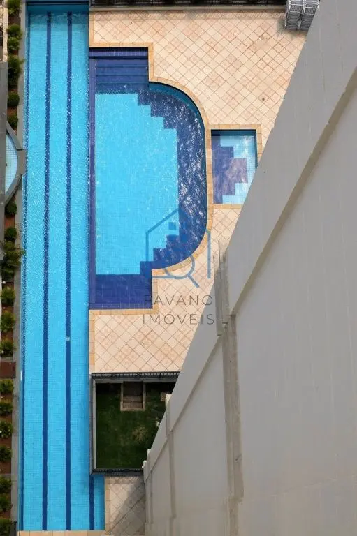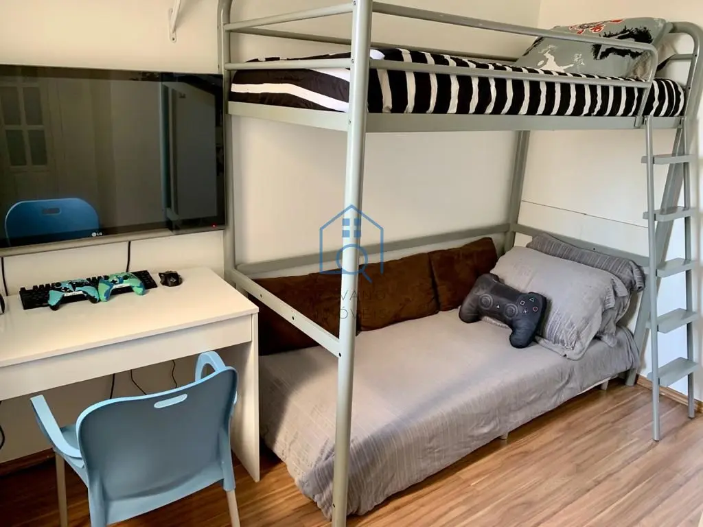 Piscinas infantil e adulto, playground, quadra de squash, quadra poliesportiva, sala de ginástica, salão de festas, salão de jogos, sauna, forno de pizza.