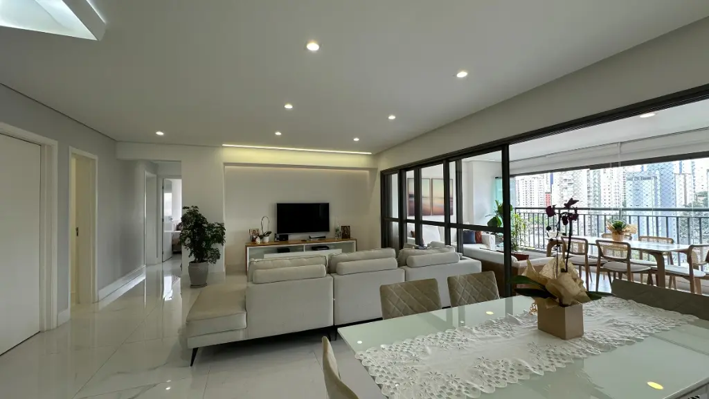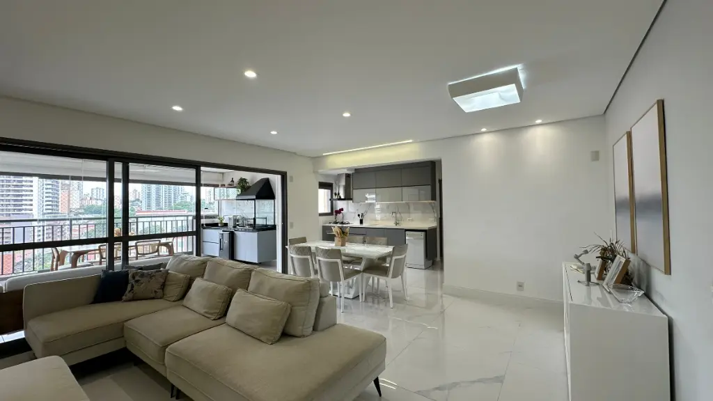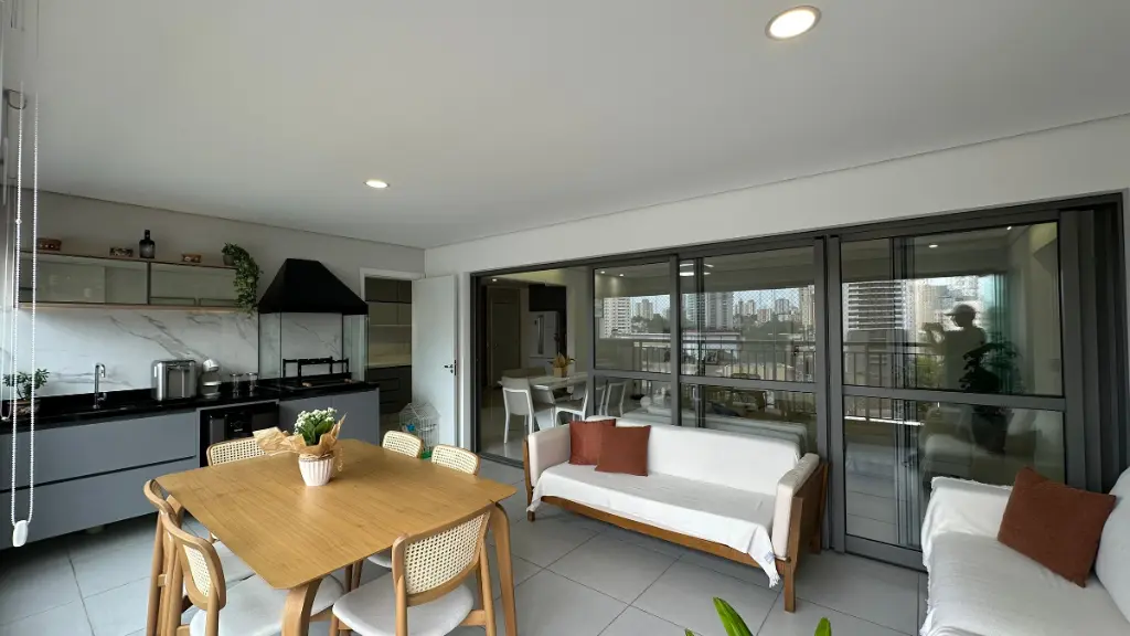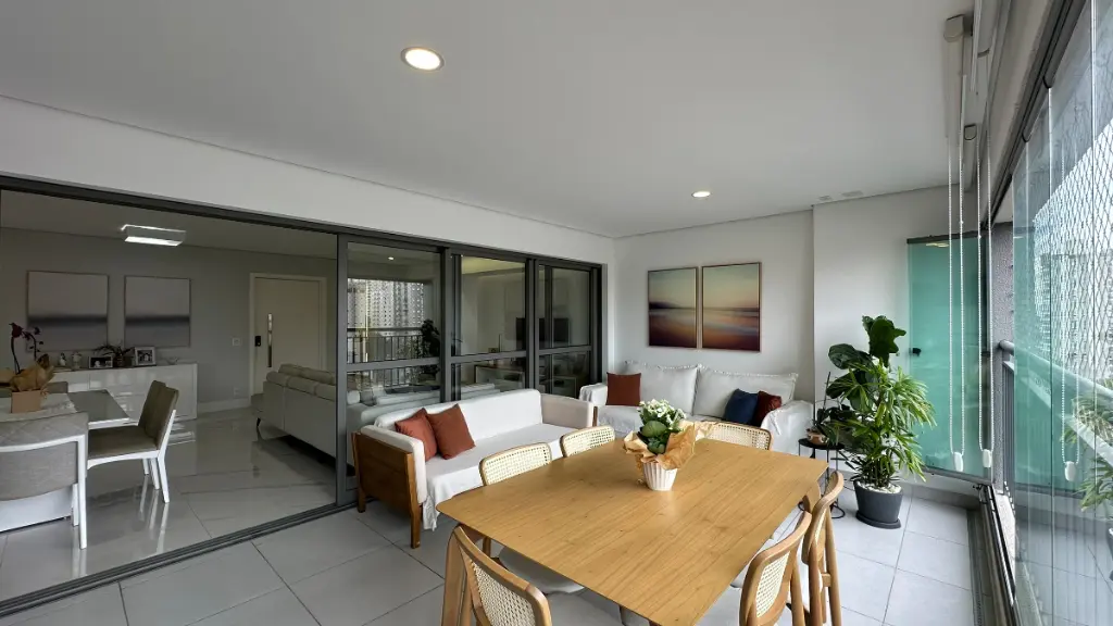 Com 150 m² muito bem distribuídos, o imóvel apresenta um projeto contemporâneo que privilegia integração dos ambientes, amplitude e iluminação natural. A área social é composta por salas de estar e jantar integradas à cozinha, criando um espaço fluido e acolhedor, ideal tanto para o dia a dia quanto para receber convidados com conforto e elegância.