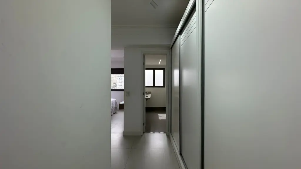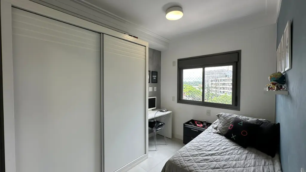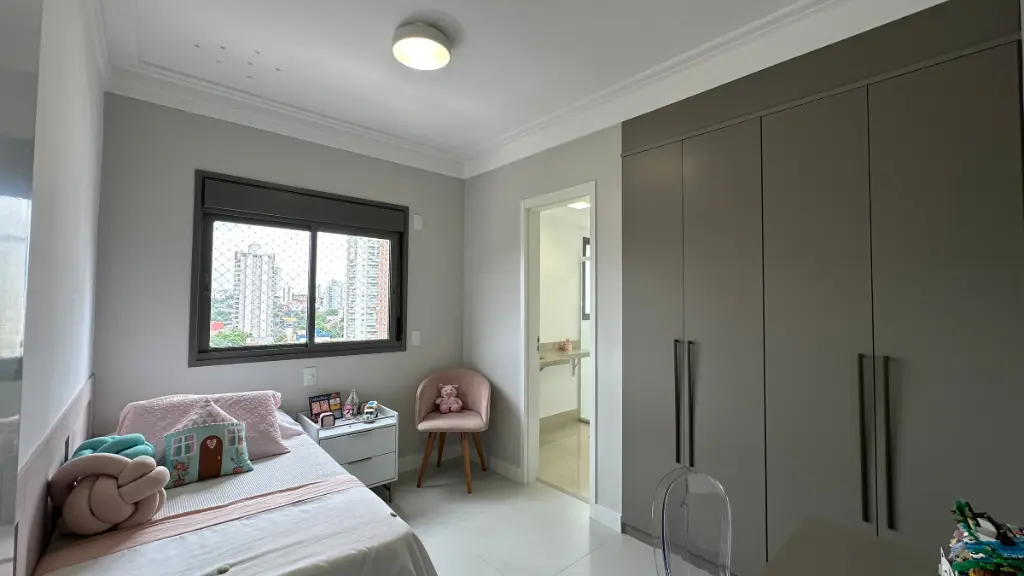Na área íntima, o apartamento dispõe de três suítes, garantindo privacidade e comodidade para toda a família. Os ambientes contam com armários planejados, excelente aproveitamento de espaço e infraestrutura pronta para instalação de ar-condicionado.