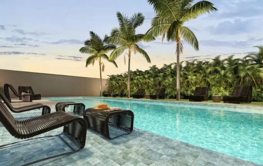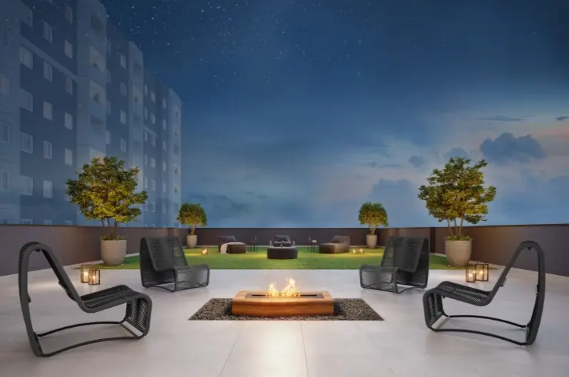 Portaria com Clausura de Pedestre Infraestrutura para Minimercado Espaço Barbearia Salão de Festas Brinquedoteca Espaço Camarote Lavanderia Espaço Funcional Academia Espaço Teen Lounge Externo Playground Espaço Piquenique Bicicletário Pet Place Solarium Piscina adulto com deck molhado Churrasqueira Lounge Praça do Luau Lounge Rooftop