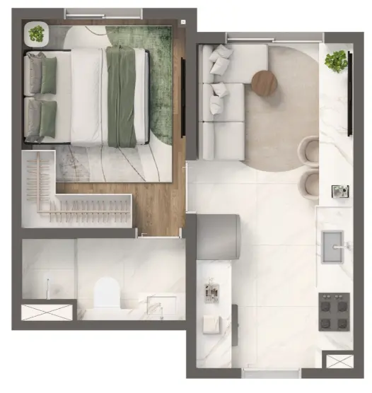 Metragem: 24m² | 25m² | 31m² | 33m² | 36m²