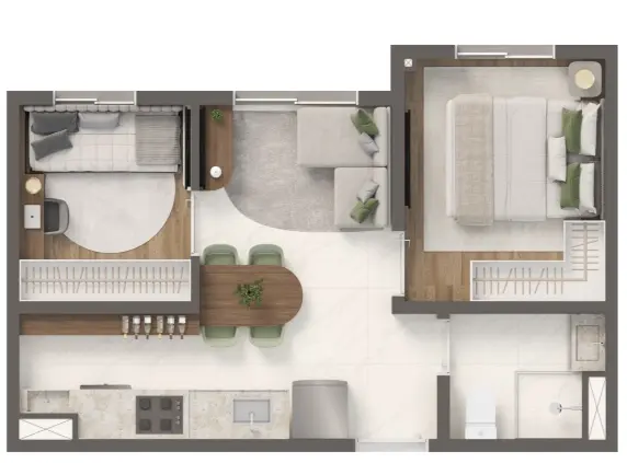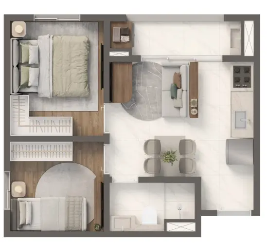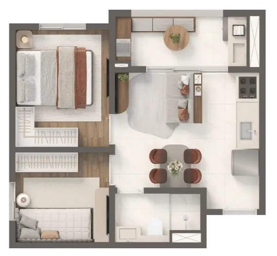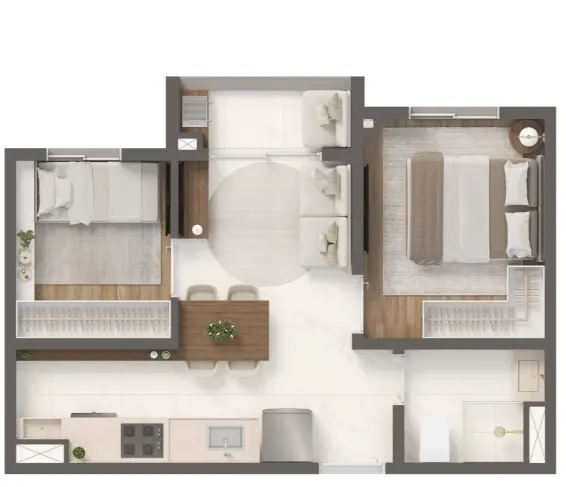 1 ou 2 dormitórios com opção de varanda