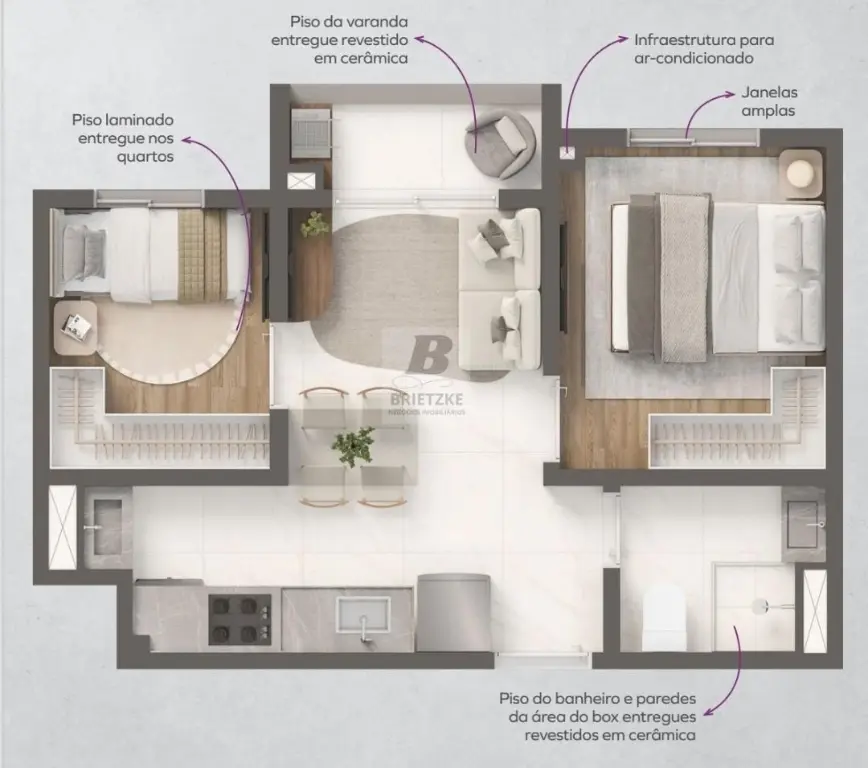 - Dormitórios com Piso Laminado