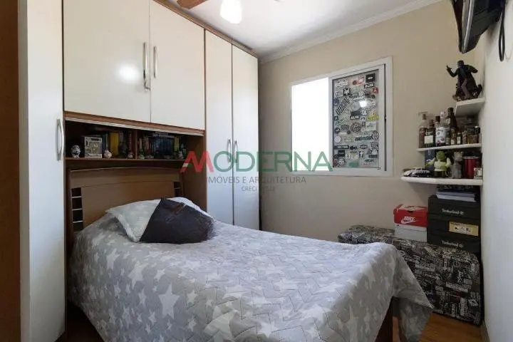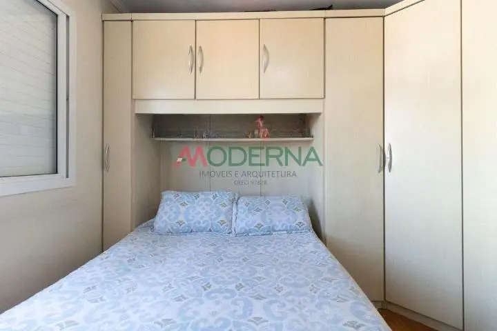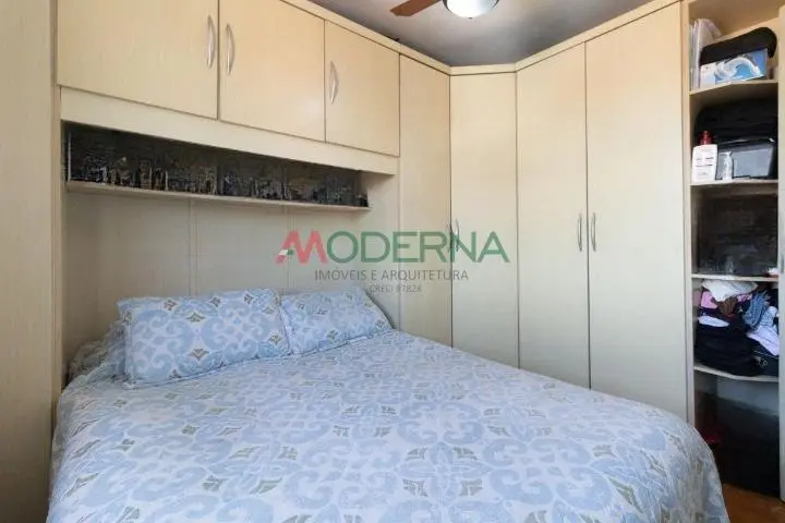 O imóvel possui 2 dormitórios com armários planejados, todo em piso laminado.