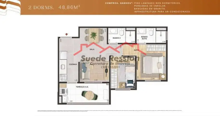 Opções metragem, 27, 34, 35, 37, 38, 42, e 49 m². com terraço,