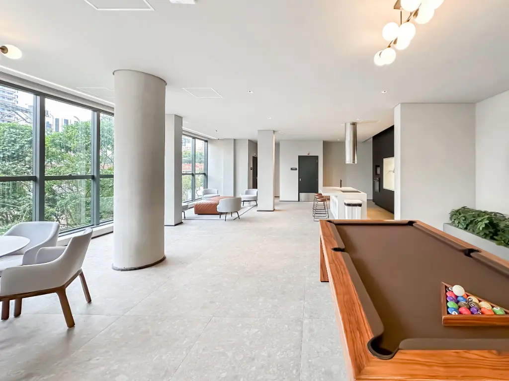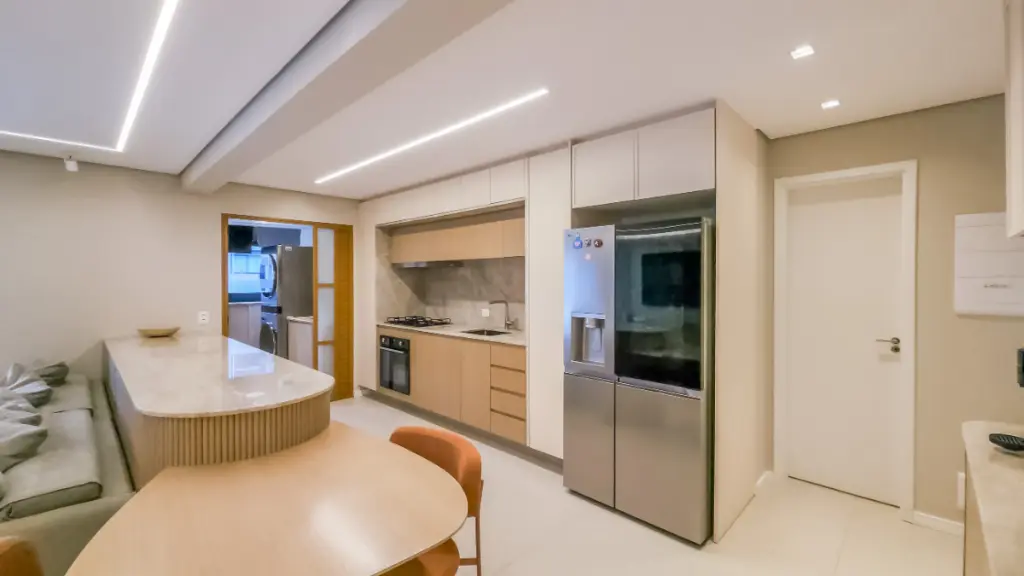 Com um projeto contemporâneo e acabamentos refinados, o imóvel oferece uma ampla área social integrada, ideal para receber com estilo. A sala de estar, iluminada por um projeto de iluminação em LED, revela um ambiente acolhedor e sofisticado, conectado de forma fluida à cozinha e ao lavabo.