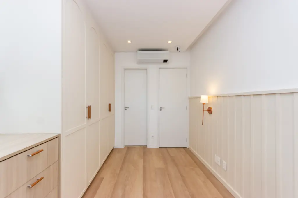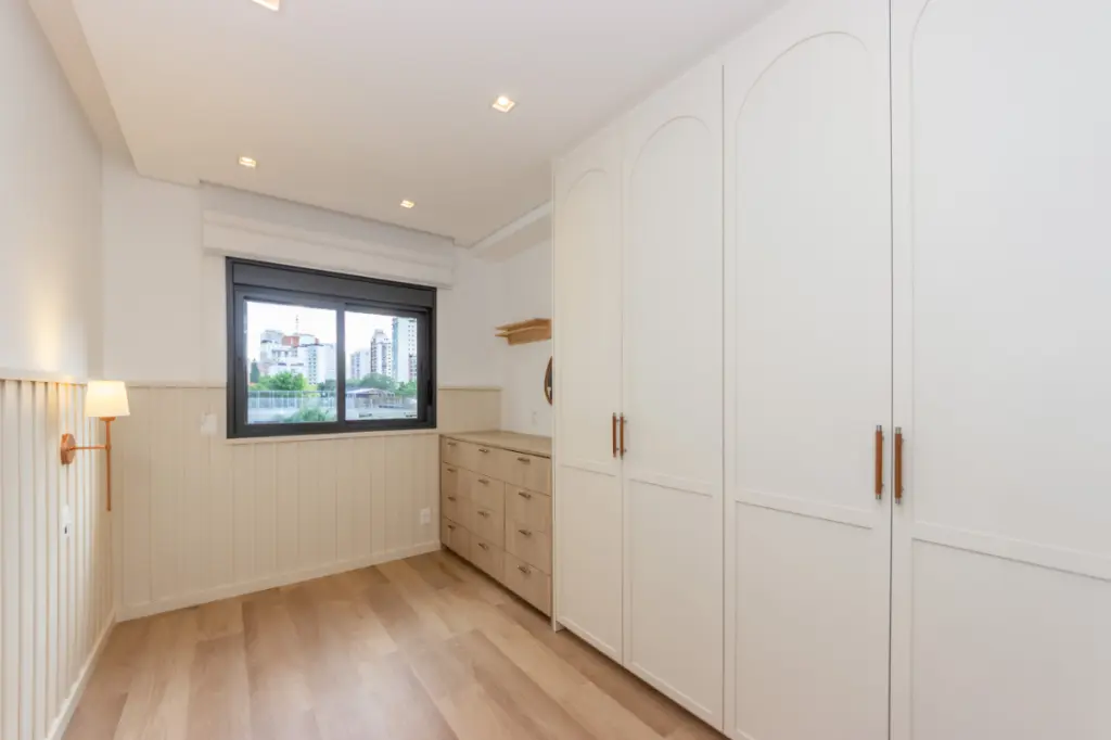 Na área íntima, três suítes espaçosas, todas com armários planejados, garantem conforto, privacidade e bem-estar. O imóvel dispõe ainda de duas vagas de garagem. Aquecedor à gás e ar-condicionado em todos os ambientes.