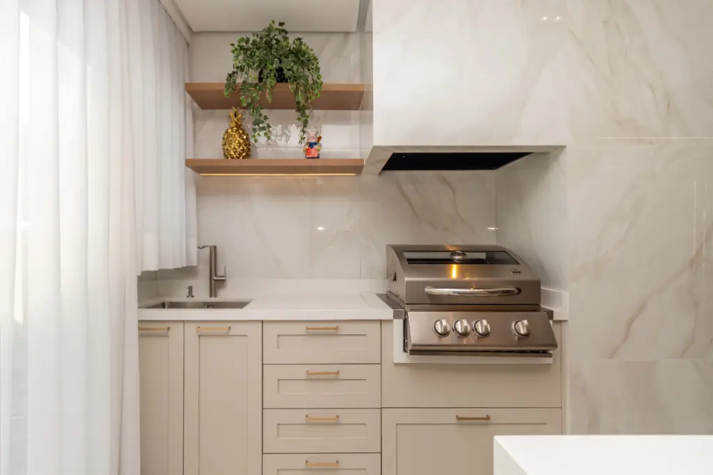 Churrasqueira e forno de pizza a gás na varanda gourmet-(Infra para carvão).
