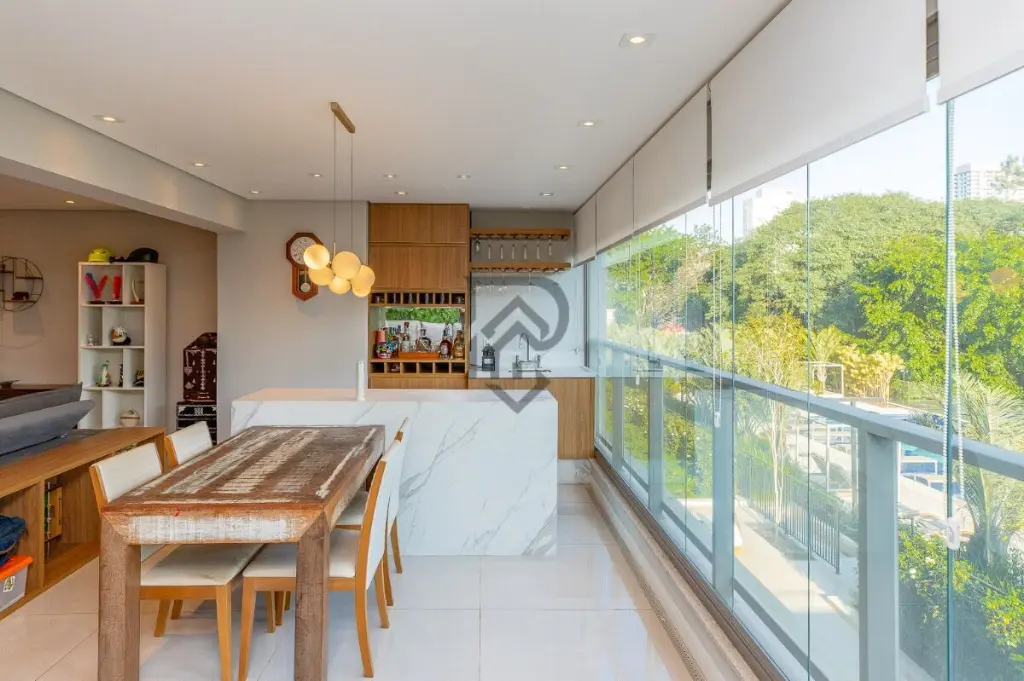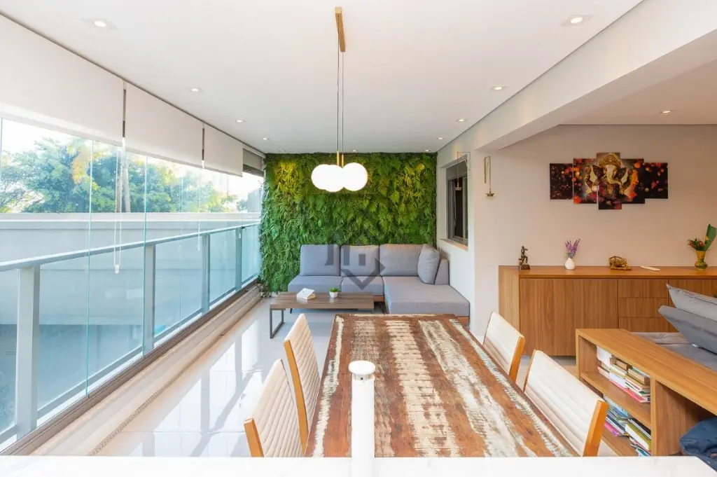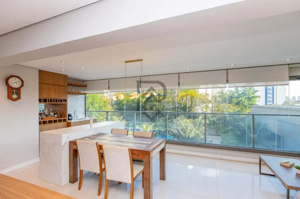 Apartamento Garden exclusivo com 165M² e vista para bosque privativo de 3.700 m². Descubra o seu refúgio de luxo neste espaçoso apartamento de 165m², localizado no condomínio Quadra Greenwich. Com um design cuidadosamente planejado e acabamentos impecáveis, este apartamento oferece uma experiência de moradia excepcional. Os 3 quartos deste apartamento são equipados com armários embutidos, oferecendo amplo espaço de armazenamento. A suíte principal é especialmente impressionante, com uma varanda privativa que possui fechamento em vidro, proporcionando vistas deslumbrantes. A área de serviço é arejada e iluminada, permitindo uma atmosfera agradável. A cozinha espaçosa conta com armários planejados, bancadas em mármore e até mesmo um nicho para um refrigerador side by side. Para os amantes do entretenimento, a área gourmet planejada com bar é um destaque, apresentando um projeto de jardim vertical e fechamento em vidro com garantia de 9 anos. Além disso, desfrute de uma área externa privativa e descoberta, com uma vista privilegiada para o pôr do sol. O condomínio Quadra Greenwich oferece uma combinação perfeita entre lazer e tranquilidade. Com uma quadra exclusiva de 11.300m², este empreendimento foi projetado para proporcionar uma vida harmoniosa junto à natureza. As comodidades incluem salão de festas, churrasqueira, sauna, lounge com jardim e cascata, brinquedoteca, playground, pet place, salão de jogos, mini mercado, academia completa e equipada, piscina coberta e aquecida, além de uma piscina descoberta com deck seco e uma vista deslumbrante para o grandioso bosque privativo de 3.700m² do condomínio. A localização é excelente, em uma rua arborizada, a apenas 4 minutos da estação de metrô Borba Gato. Com fácil acesso às principais vias, como Berrini, JK e Faria Lima, você estará a apenas 1,3km do Shopping Morumbi e a 1,5km do Market Place. A região é repleta de escolas, farmácias e supermercados, além de estar próximo ao Pão de Açúcar, Padaria Santa Marcelina, Academia Bio Ritmo e a apenas 400 metros do Consulado dos EUA. Venha conhecer este apartamento pronto para morar, onde o conforto e o estilo de vida sofisticado se encontram. Agende uma visita hoje mesmo
